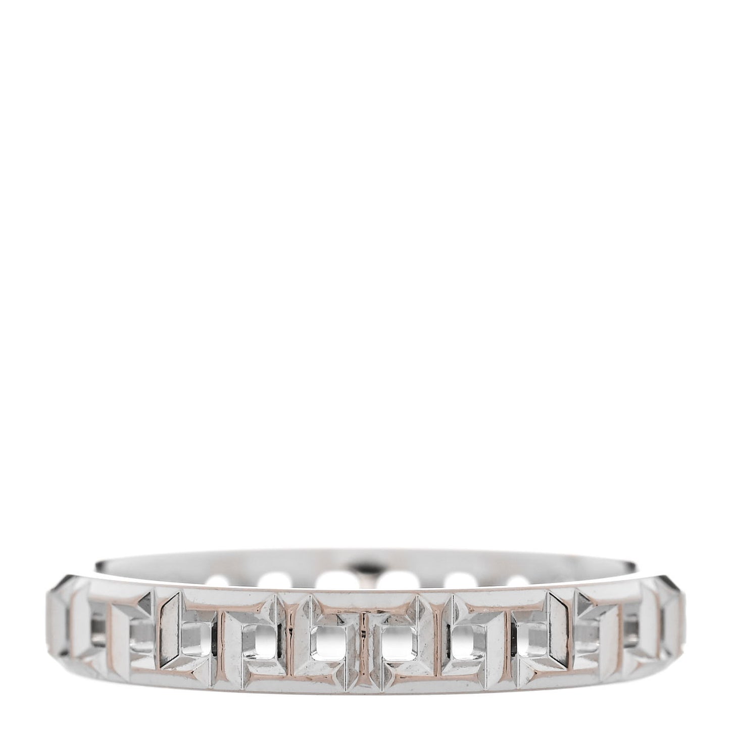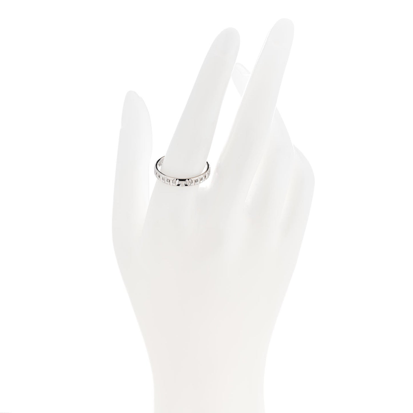 This is an authentic TIFFANY 18K White Gold Narrow T True Band Ring size 60 or 9. The ring is crafted of 18 karat white gold and features a narrow band composed of continuous 'T' motifs.