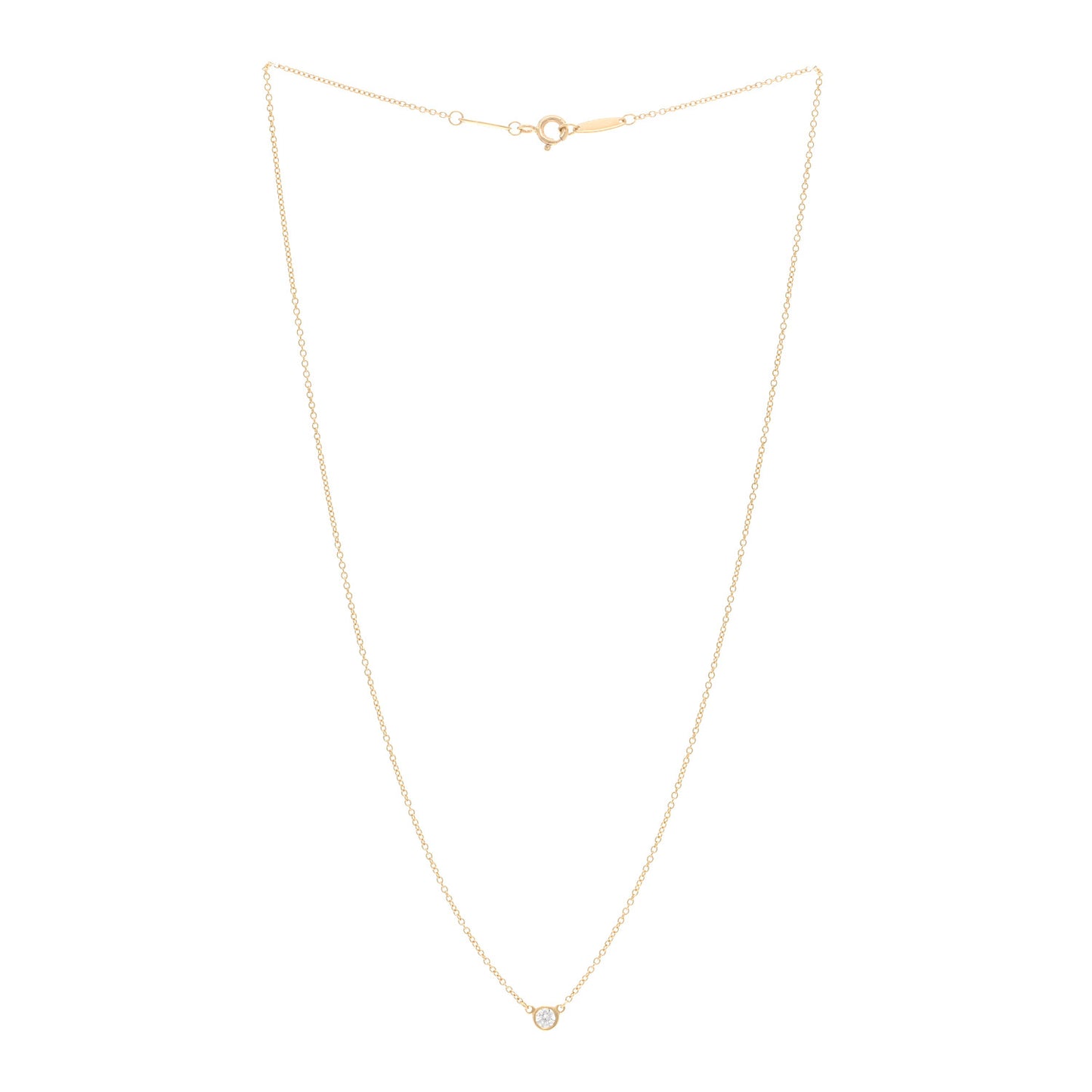 This is an authentic TIFFANY 18K Yellow Gold Diamond .14ct Elsa Peretti Diamonds by the Yard Pendant Necklace. The necklace is crafted of 18 karat yellow gold and features a bezel-set round brilliant cut diamond weighing approximately .14 carat.Follow this item for alerts. Tiffany is a registered trademark of Tiffany. FASHIONPHILE is not affiliated with Tiffany.