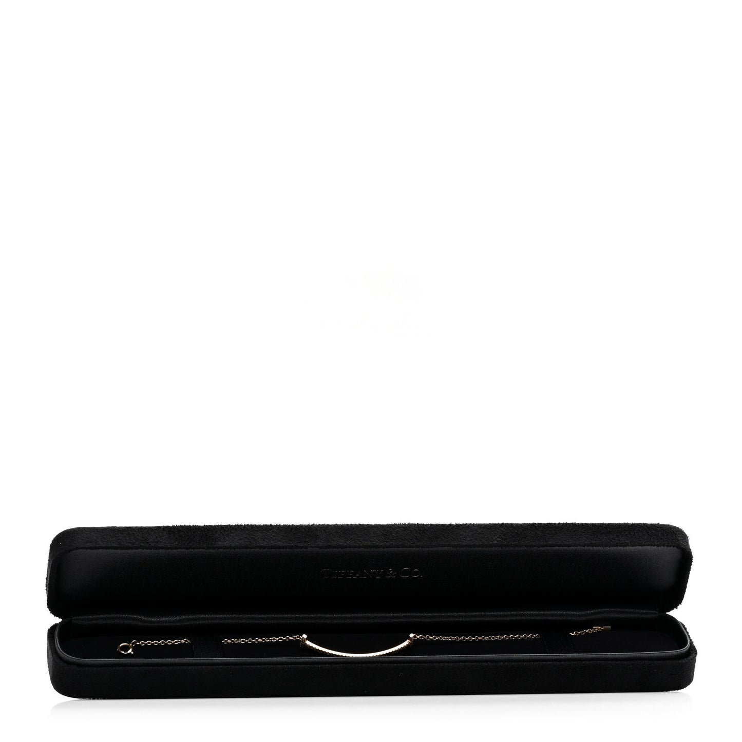 This is an authentic TIFFANY 18K Rose Gold Diamond T Smile Bracelet. The bracelet is crafted of 18 karat rose gold and features the signature T smile motif station embellished with round brilliant cut diamonds weighing approximately .12 total carat weight.Follow this item for alerts. Tiffany is a registered trademark of Tiffany. FASHIONPHILE is not affiliated with Tiffany.