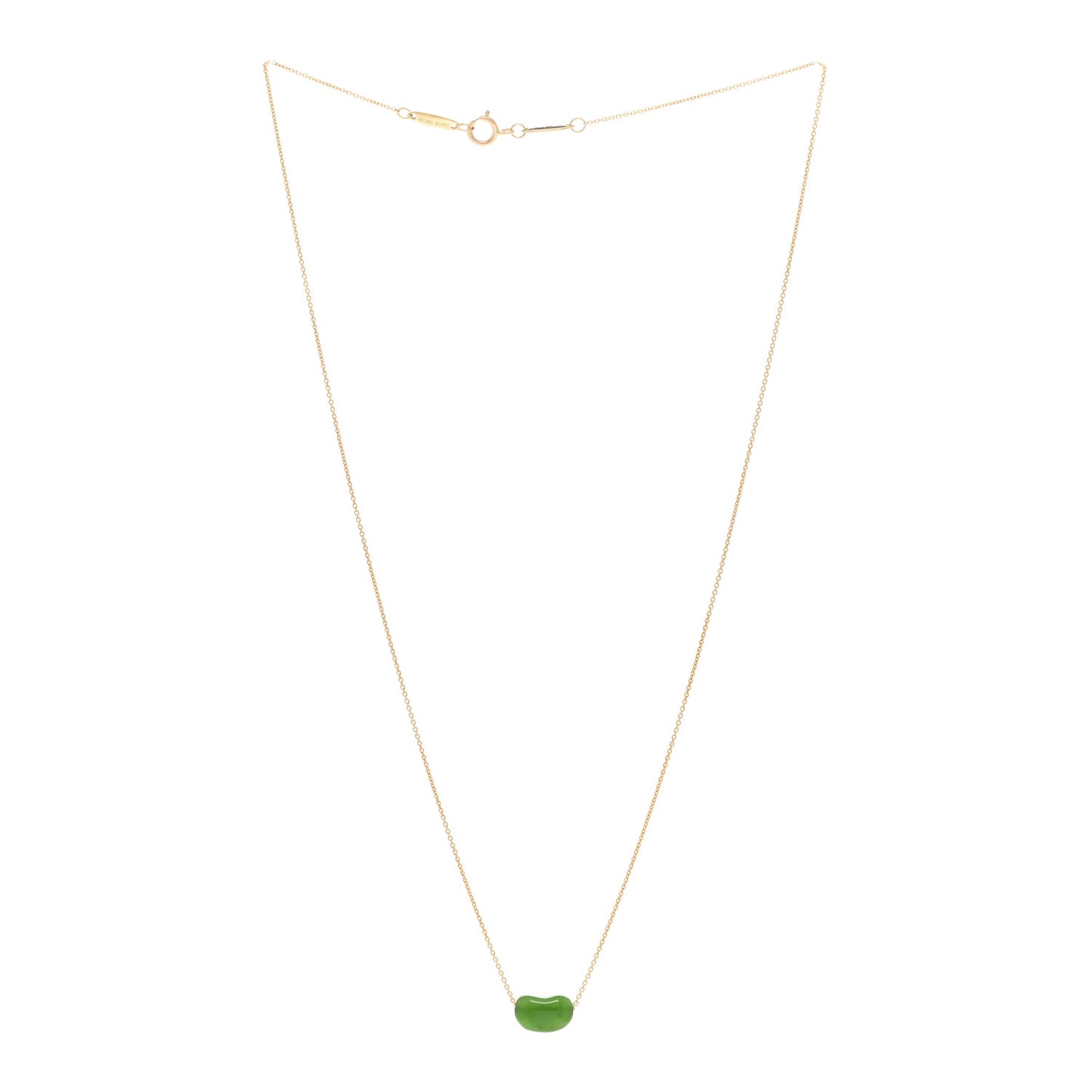 This is an authentic TIFFANY 18K Yellow Gold Green Jade 9mm Elsa Peretti Bean Pendant Necklace. The necklace is crafted of 18 karat yellow gold and features a 9mm green jade bean pendant on a delicate gold chain.Follow this item for alerts. Tiffany is a registered trademark of Tiffany. FASHIONPHILE is not affiliated with Tiffany.
