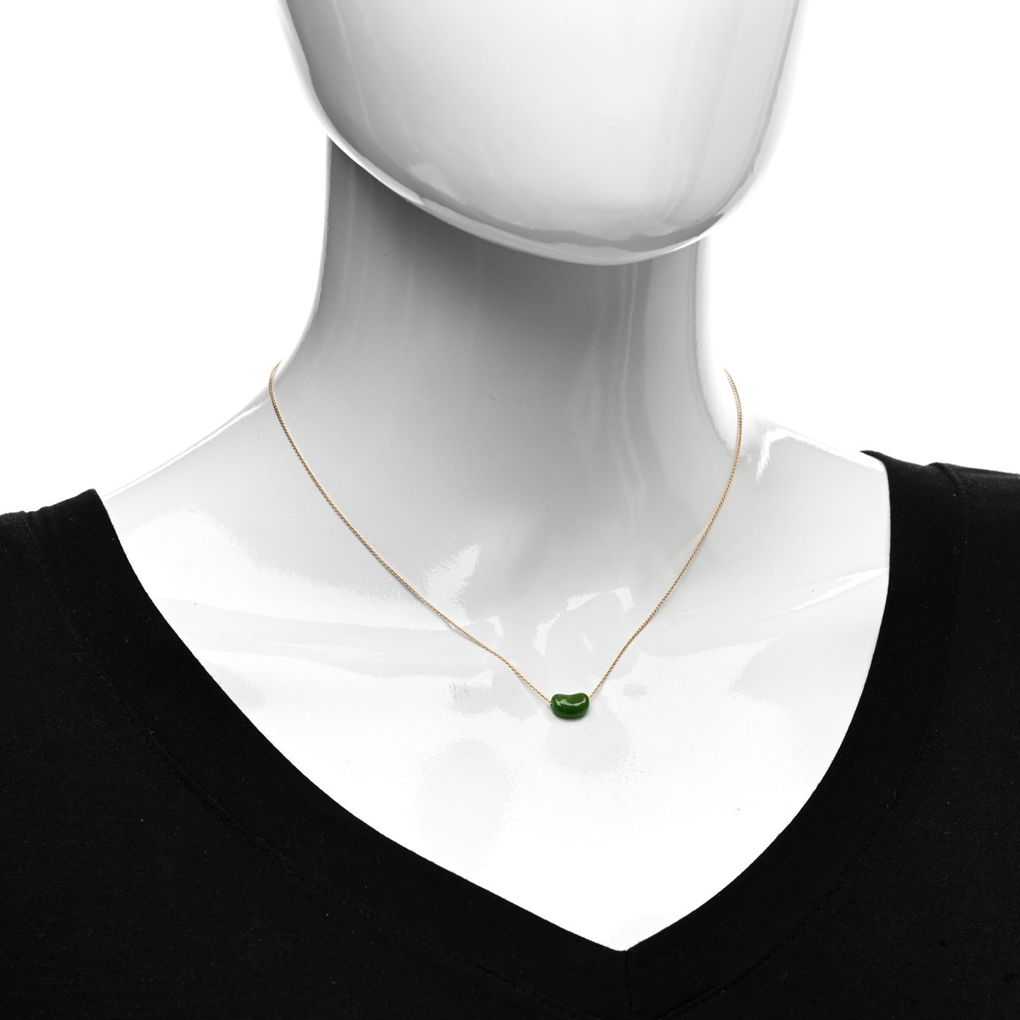 18K Yellow Gold Green Jade 9mm Elsa Peretti Bean Pendant Necklace