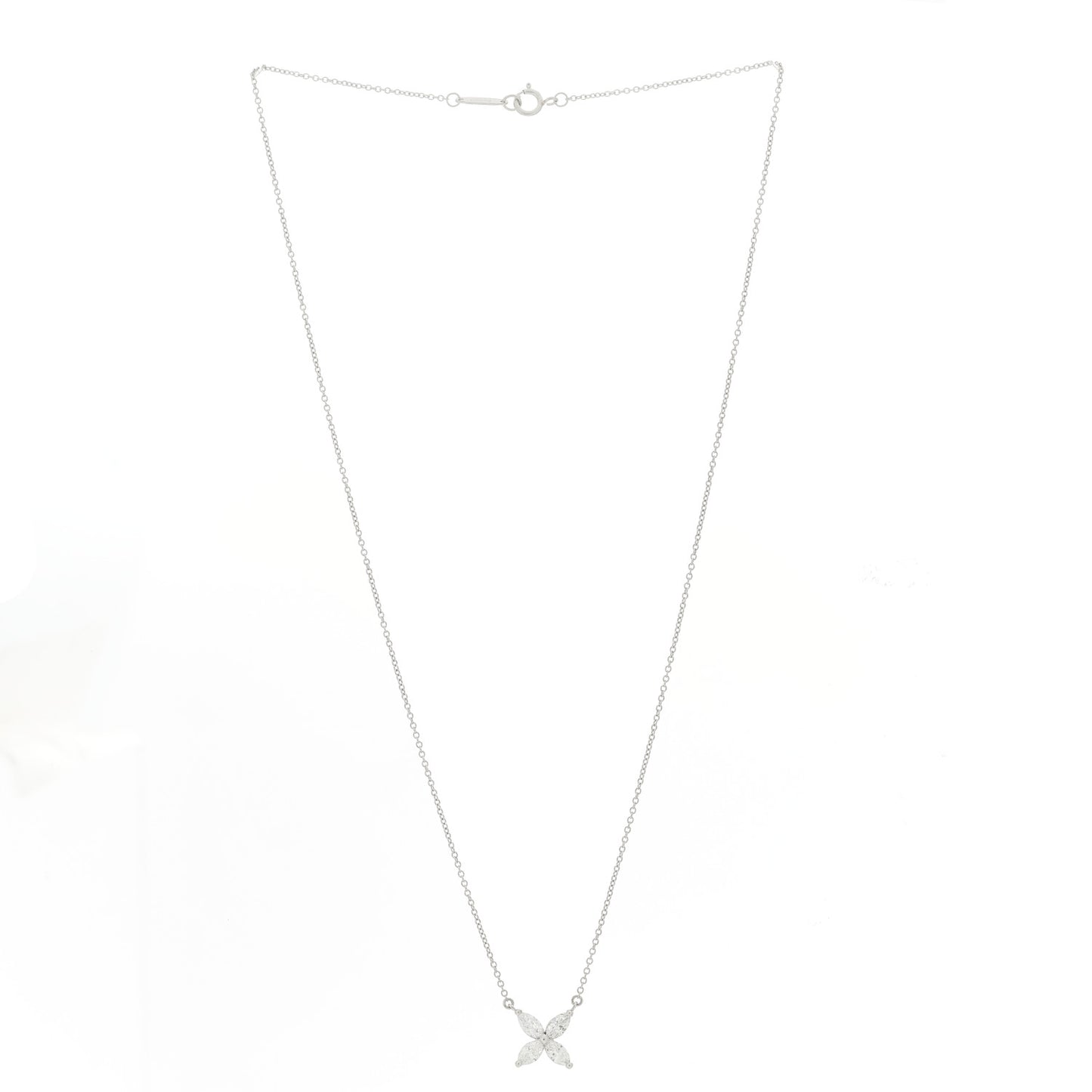 This is an authentic TIFFANY Platinum Diamond Large Victoria Necklace. The necklace is crafted of platinum and features four marquise cut diamonds weighing approximately .81 total carat weight.