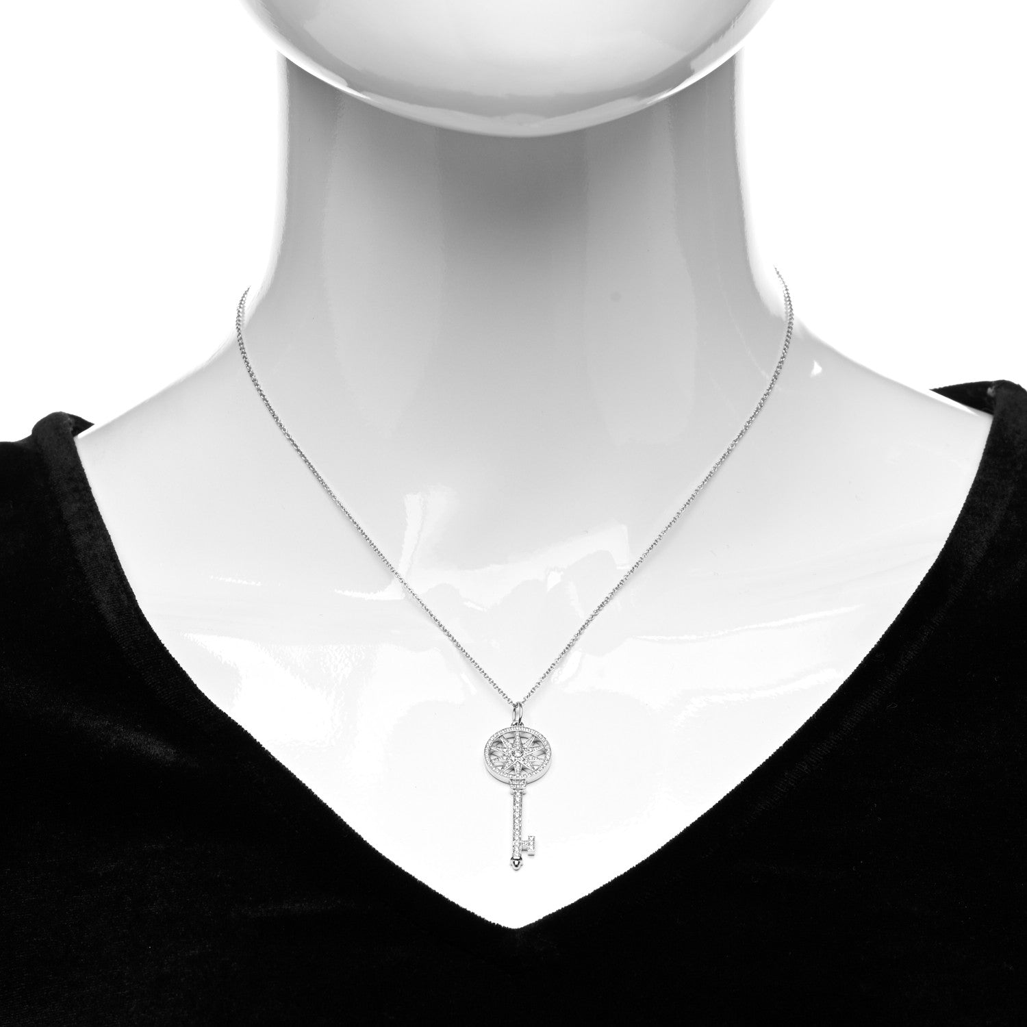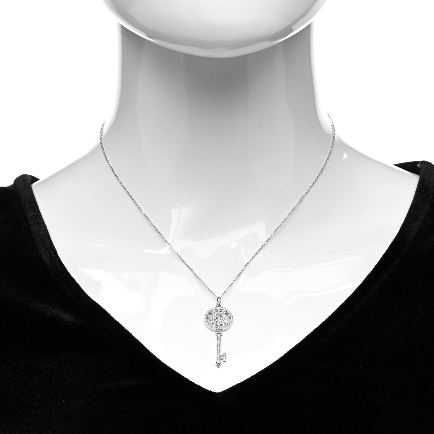 This is an authentic TIFFANY Platinum 18K White Gold Diamond Star Key Pendant Necklace. The necklace is crafted of platinum and features a 10-pointed star key pave set with round brilliant cut diamonds, approximately .30 total carats.Follow this item for alerts. Tiffany is a registered trademark of Tiffany. FASHIONPHILE is not affiliated with Tiffany.