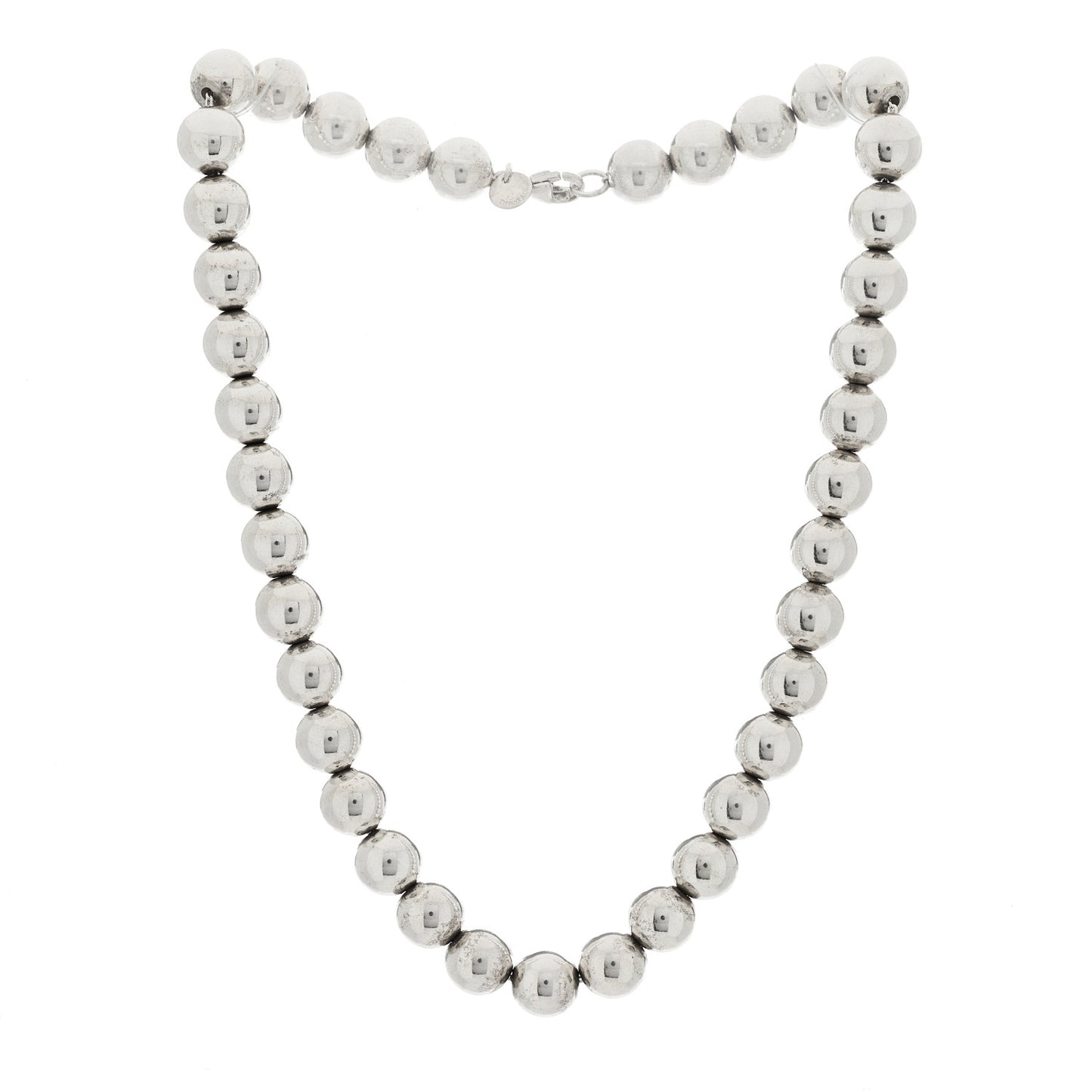 This is an authentic TIFFANY Sterling Silver 10mm HardWear Ball Necklace. The necklace is crafted of sterling silver and features polished round 10mm beads and a lobster clasp for easy wear.