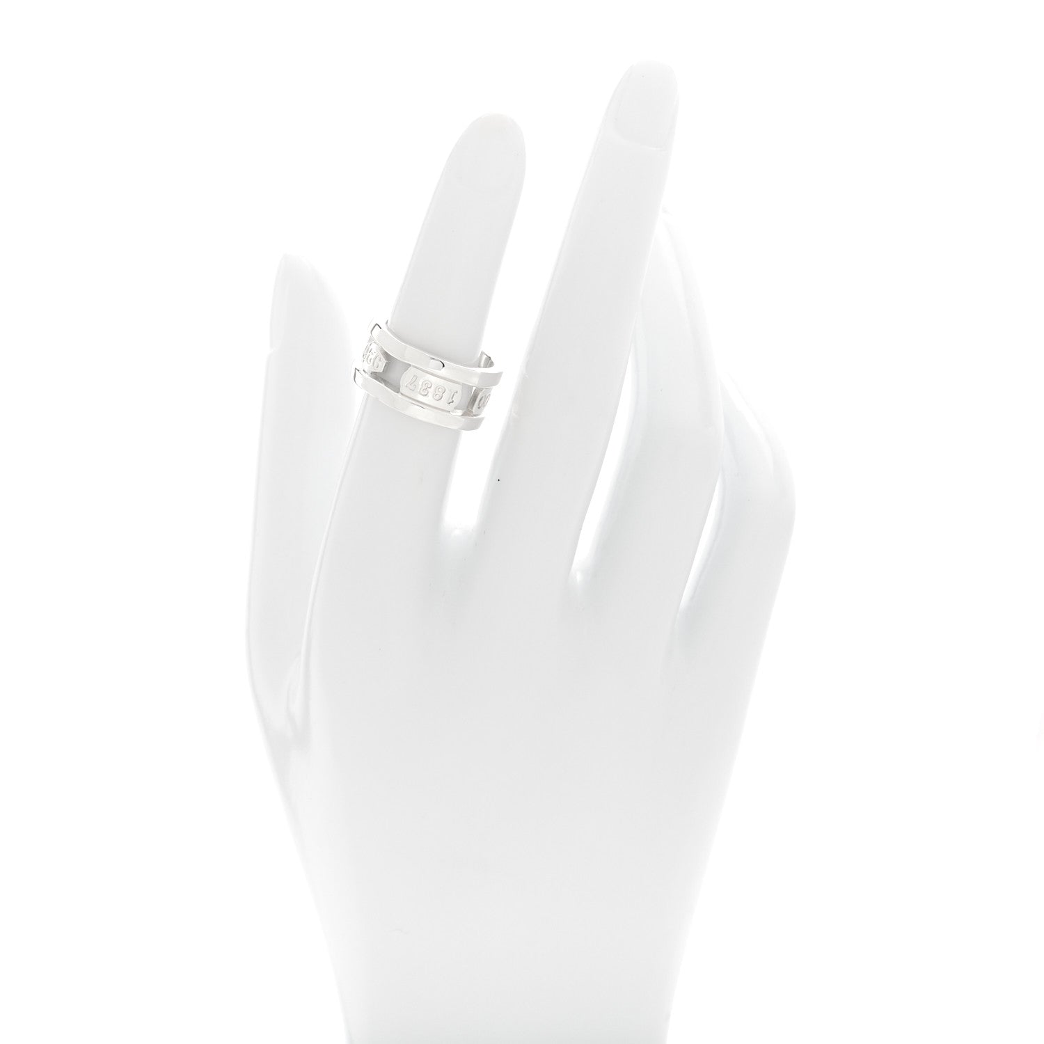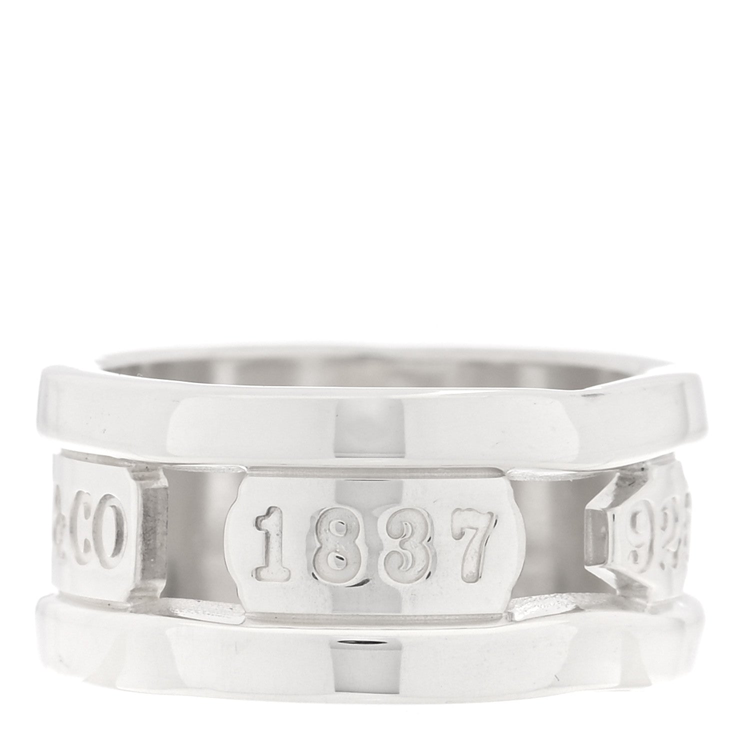This is an authentic TIFFANY Sterling Silver 1837 Elements Ring 51 5.75. The ring is crafted of sterling silver and features a cutout band engraved with the Tiffany 1837 logo.