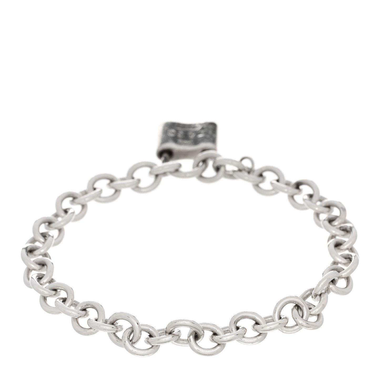 This is an authentic TIFFANY Sterling Silver 1837 Lock Charm Bracelet. The bracelet is crafted of sterling silver and features a link chain with a padlock motif clasp charm engraved with the '1837' logo.