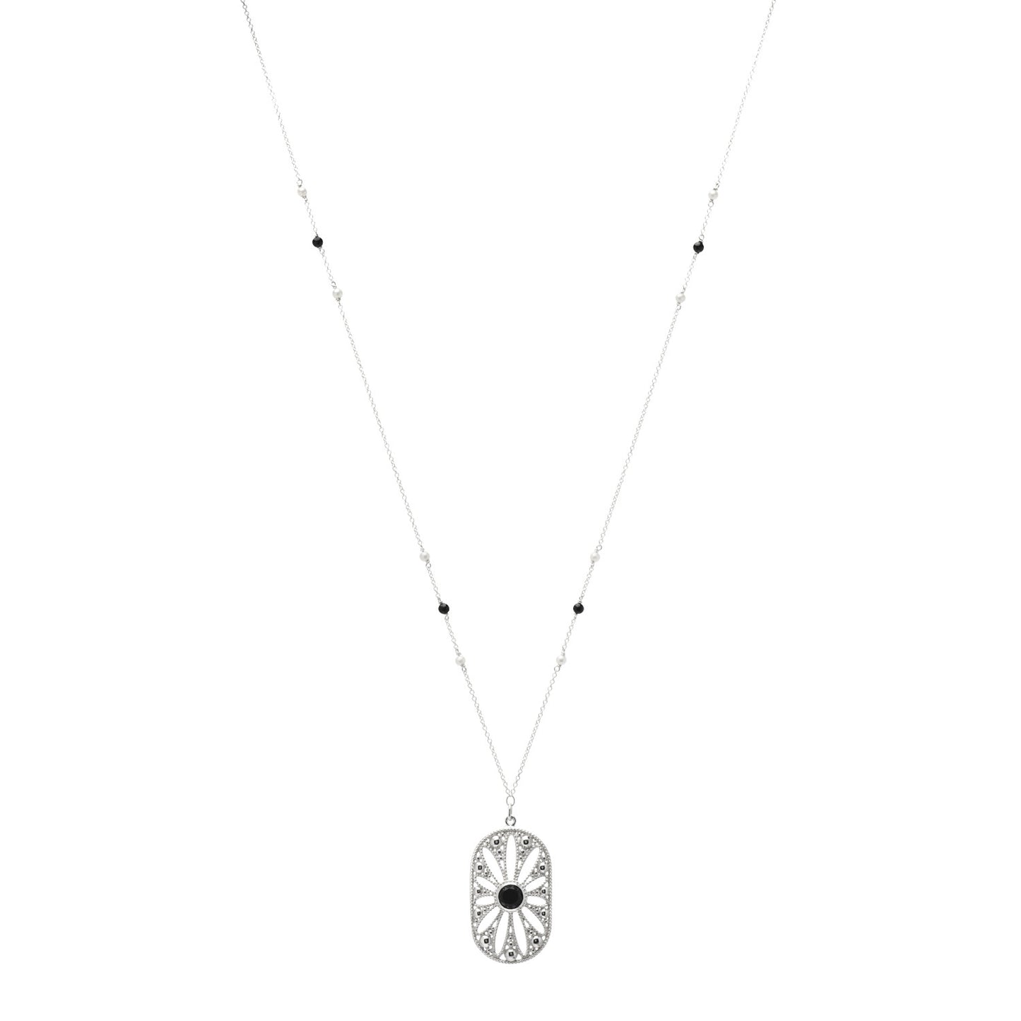 Sterling Silver Black Onyx Pearl Ziegfeld Daisy Pendant Necklace