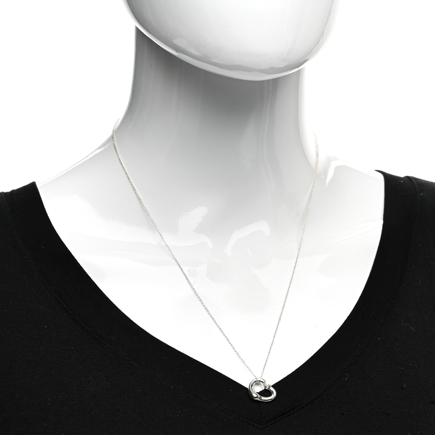 This is an authentic TIFFANY Sterling Silver Diamond 16mm Elsa Peretti Open Heart Pendant Necklace. The necklace is crafted of sterling silver and features an open heart motif pendant accented with a round brilliant cut diamond, approximately .03 total carat weight.Follow this item for alerts. Tiffany is a registered trademark of Tiffany. FASHIONPHILE is not affiliated with Tiffany.