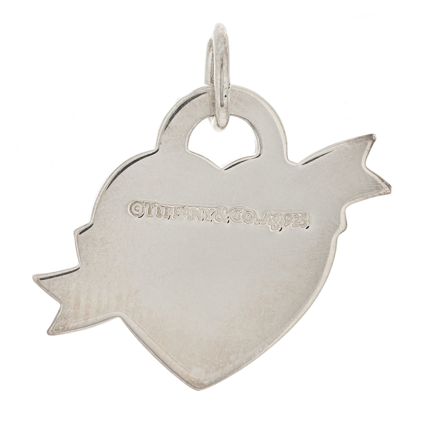 This is an authentic TIFFANY Sterling Silver Enamel Return To Tiffany Heart Ribbon Charm in Blue. The charm is crafted of sterling silver and features a heart tag with the signature 'Return to Tiffany' phrase engraved, accented with a blue enamel ribbon detail.Follow this item for alerts. Tiffany is a registered trademark of Tiffany. FASHIONPHILE is not affiliated with Tiffany.
