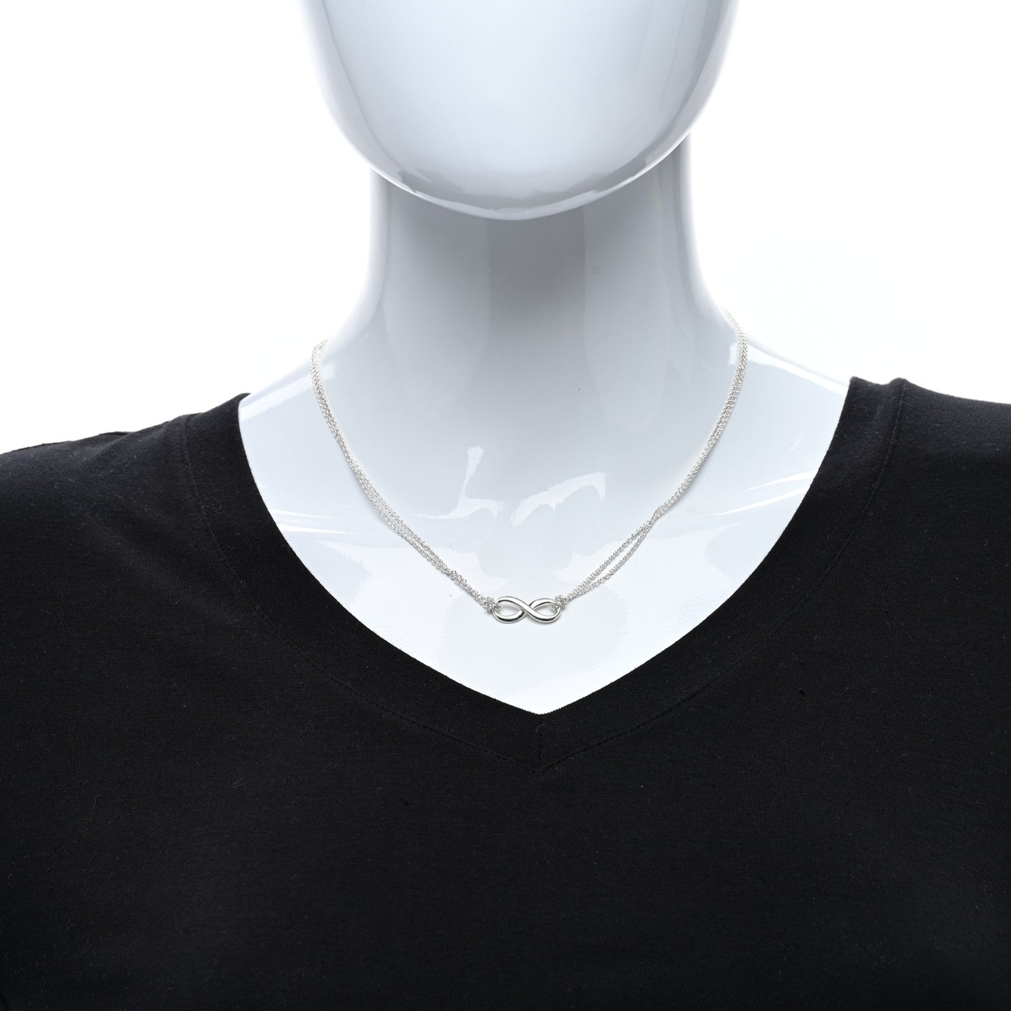 This is an authentic TIFFANY Sterling Silver Infinity Pendant Necklace. The necklace is crafted of sterling silver and features an infinity motif pendant and a double chain.Follow this item for alerts. Tiffany is a registered trademark of Tiffany. FASHIONPHILE is not affiliated with Tiffany.