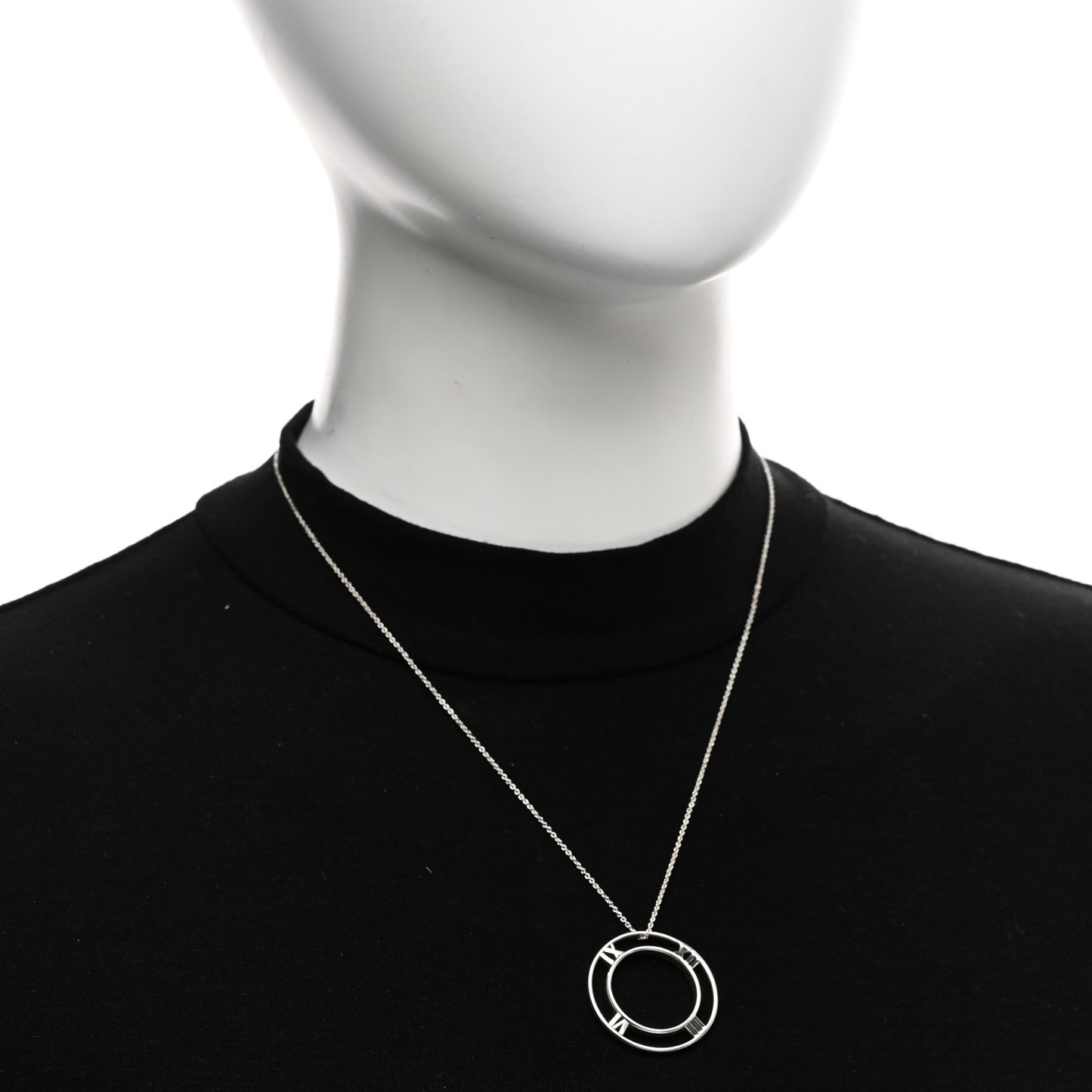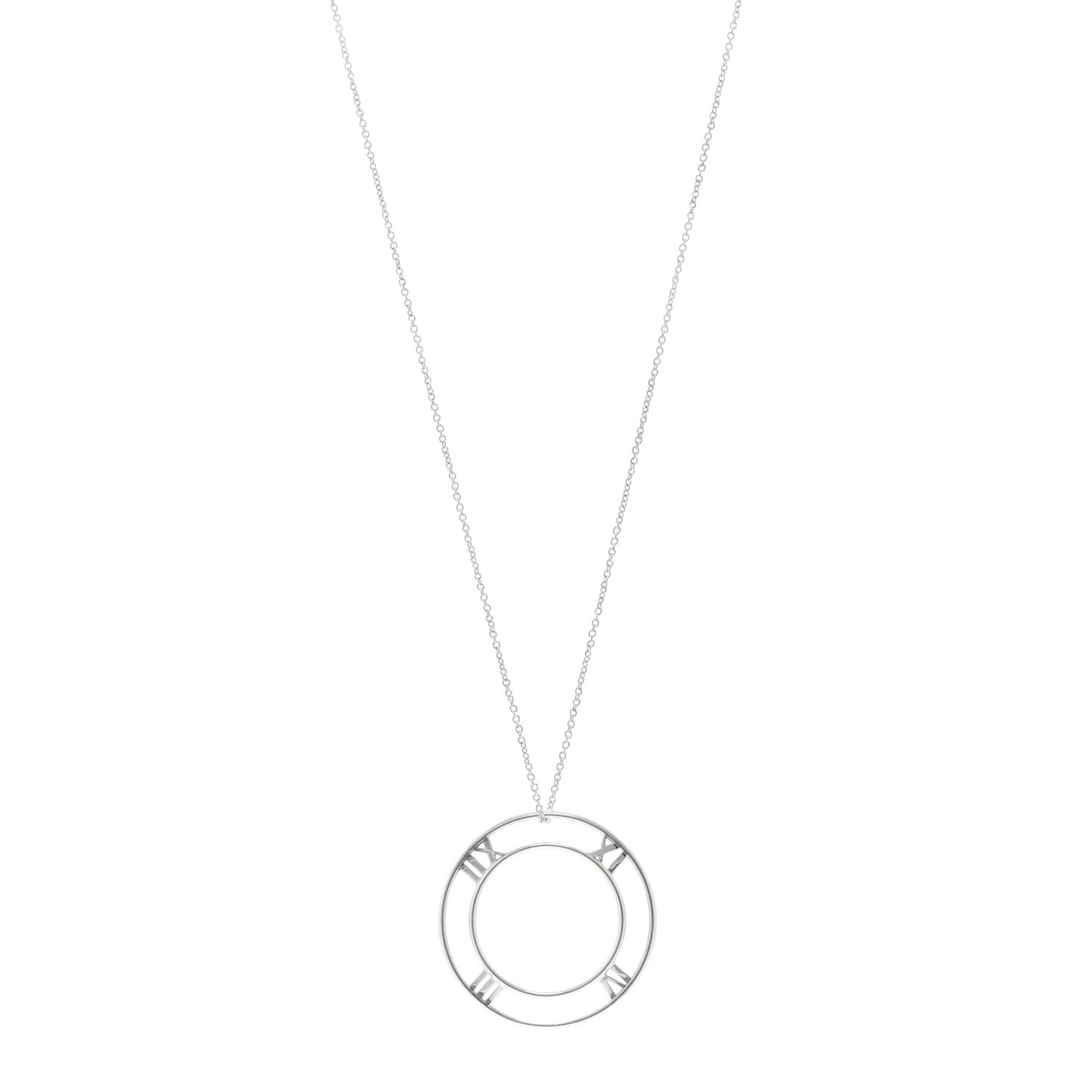 This is an authentic TIFFANY Sterling Silver Large Atlas Open Pendant Necklace. The necklace is crafted of sterling sliver and features a round open pendant adorned with Roman numeral motifs.Follow this item for alerts. Tiffany is a registered trademark of Tiffany. FASHIONPHILE is not affiliated with Tiffany.