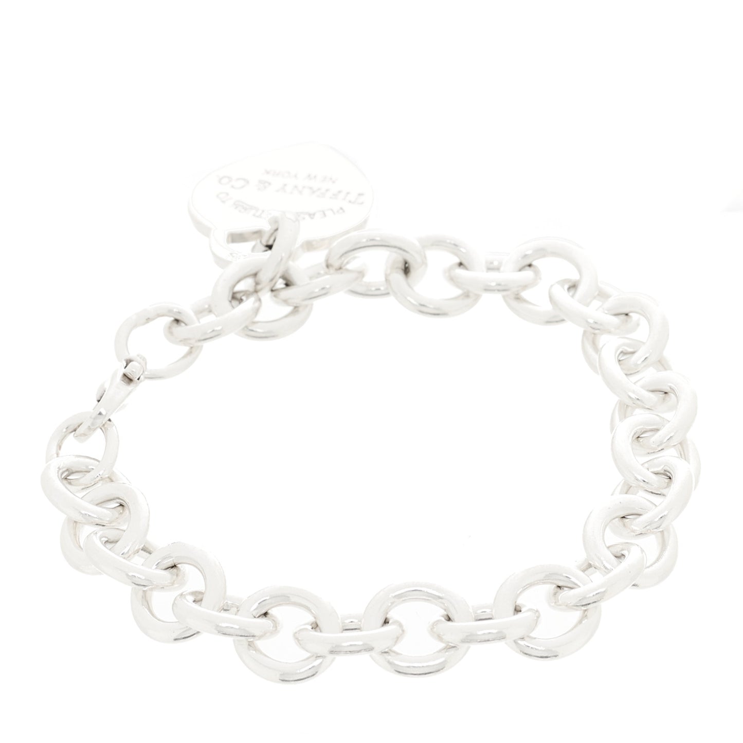 This is an authentic TIFFANY Sterling Silver Return to Tiffany Heart Tag Charm Bracelet. The bracelet is crafted of sterling silver and features polished round links and a heart tag charm engraved with the "Please Return To Tiffany" logo.Follow this item for alerts. Tiffany is a registered trademark of Tiffany. FASHIONPHILE is not affiliated with Tiffany.