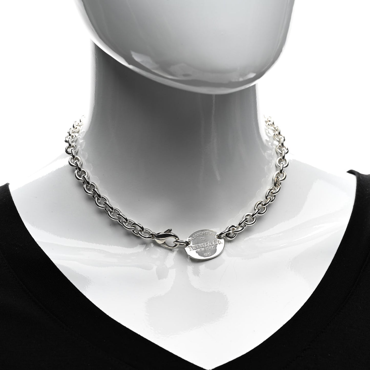 This is an authentic TIFFANY Sterling Silver Return to Tiffany Oval Tag Choker Necklace. The necklace is crafted of sterling silver and features a link chain with an oval tag engraved with the signature 'Return to Tiffany' logo.Follow this item for alerts. Tiffany is a registered trademark of Tiffany. FASHIONPHILE is not affiliated with Tiffany.