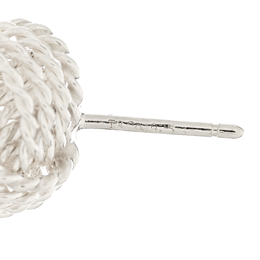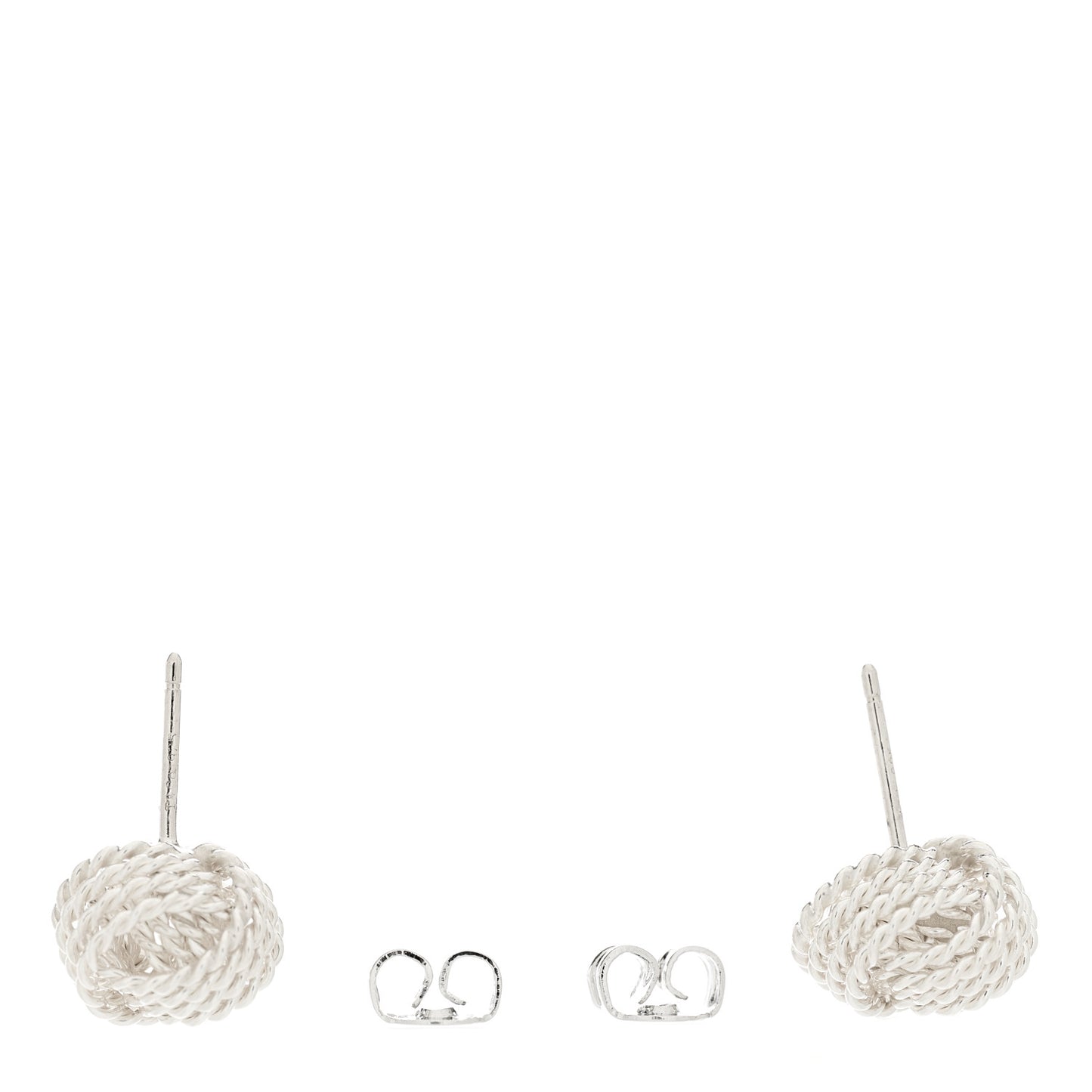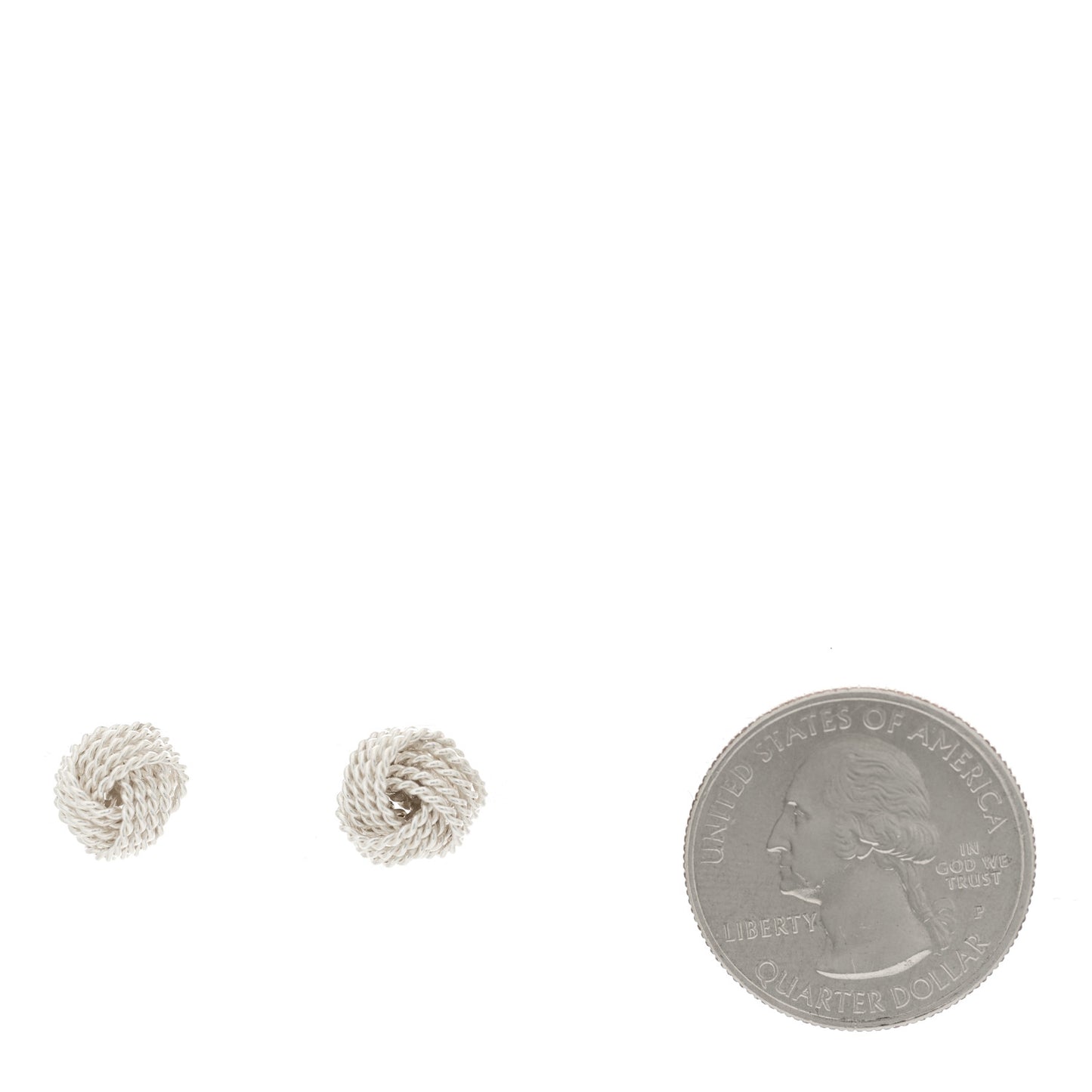 This is an authentic pair of TIFFANY Sterling Silver Twist Knot Earrings. The earrings are crafted of sterling silver and feature a textured knot motif.