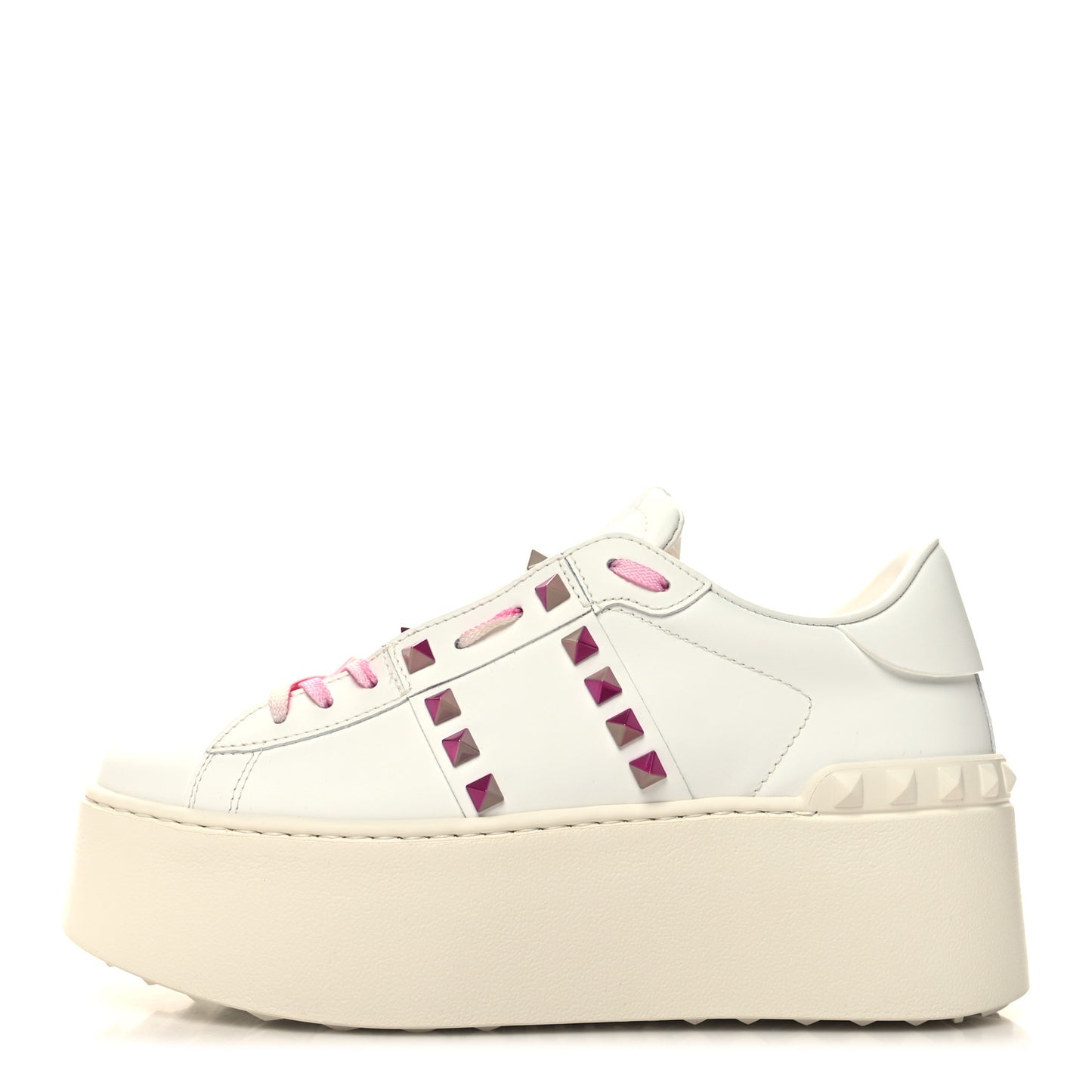 Valentino Garavani/ Accessories/ Shoes /Valentino Garavani Calfskin Rockstud Untitled 57mm Platform Sneakers 38.5 White Pink PP