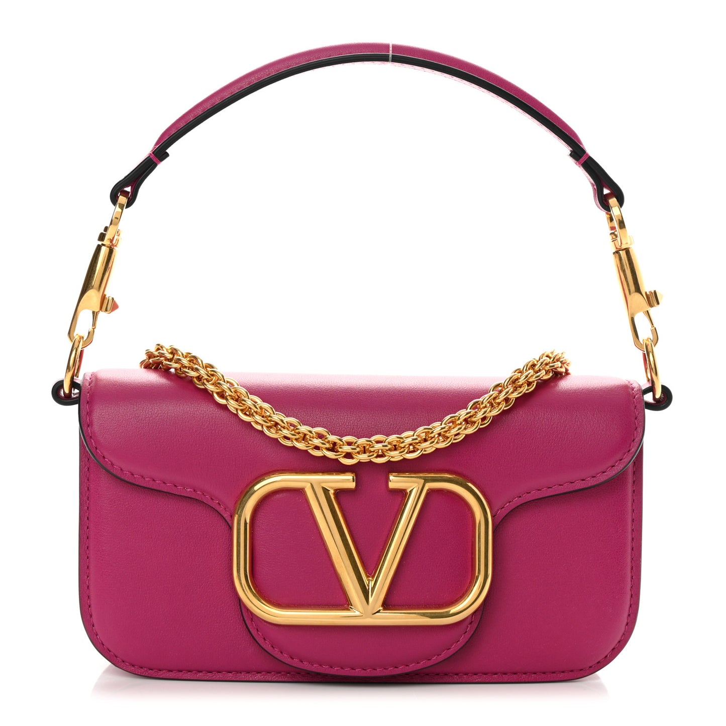 This is an authentic VALENTINO GARAVANI Calfskin Small Loco Shoulder Bag in Rose Violet. This chic shoulder bag is beautifully crafted with pink leather and with a gold VLogo Signature. The bag features a removable strap and a looping leather handle. The crossover flap opens to a matching leather interior with patch pocket.