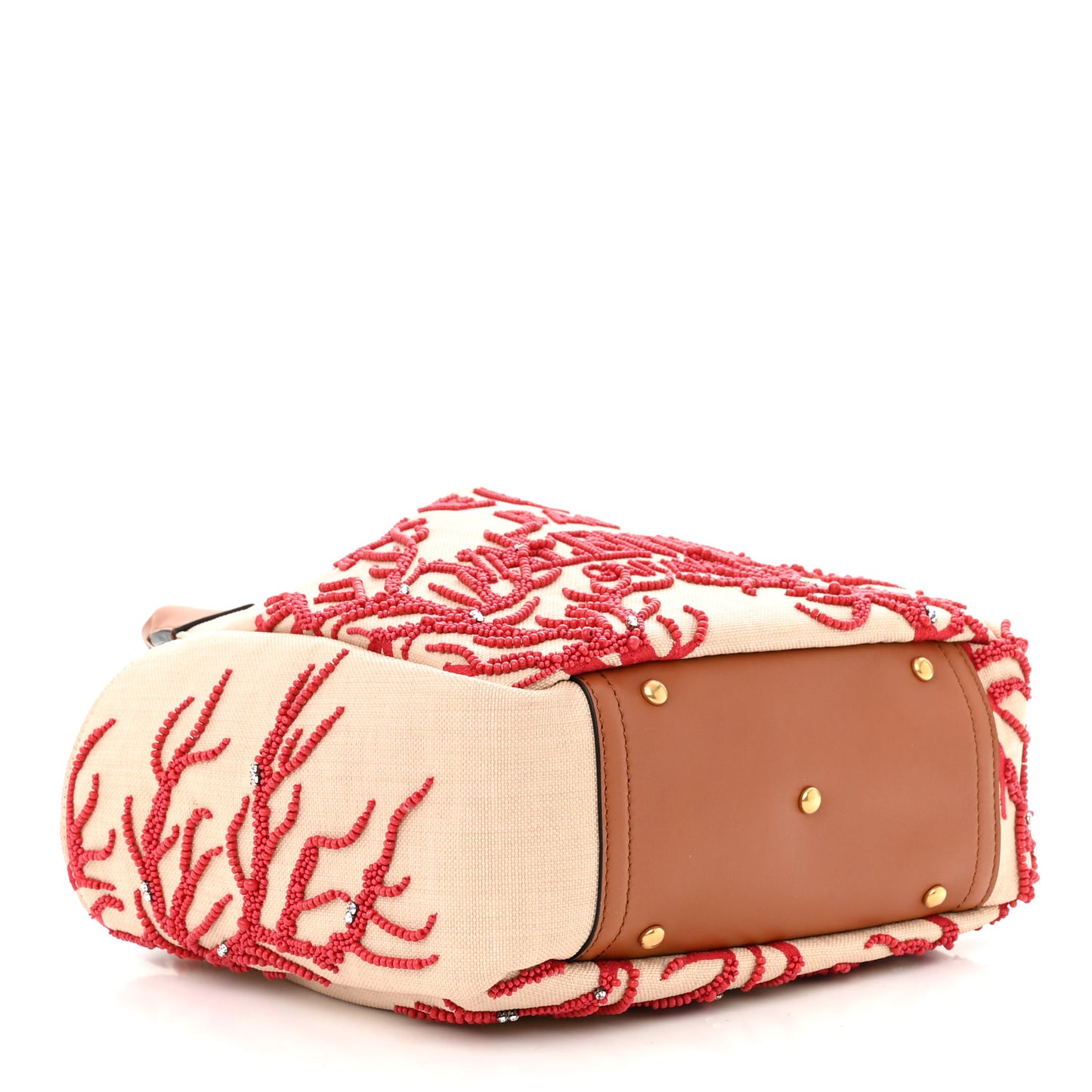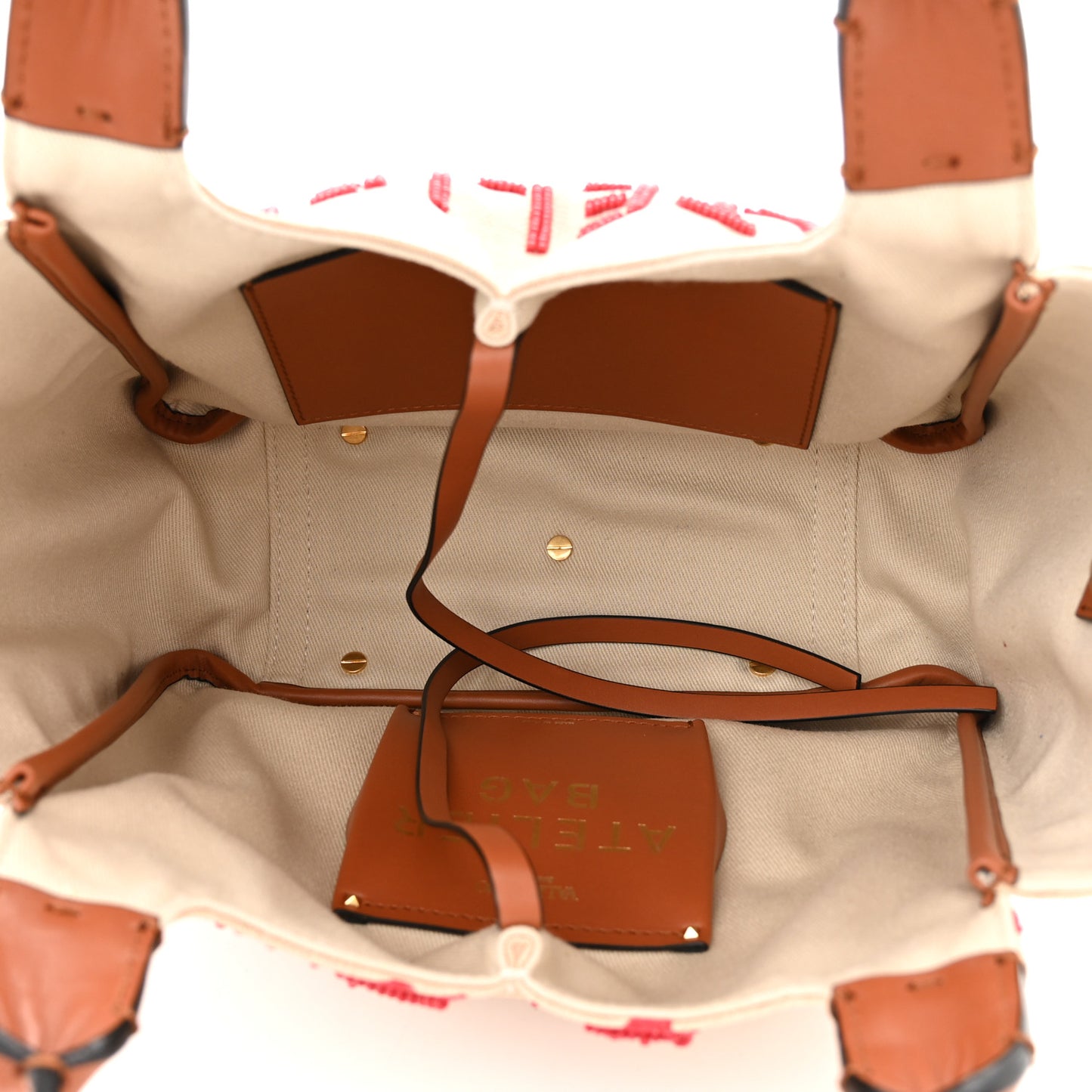 Valentino Garavani/ Bags/ Crossbody /Valentino Garavani Canvas Beaded Atelier Print Tote Bag Naturale Red