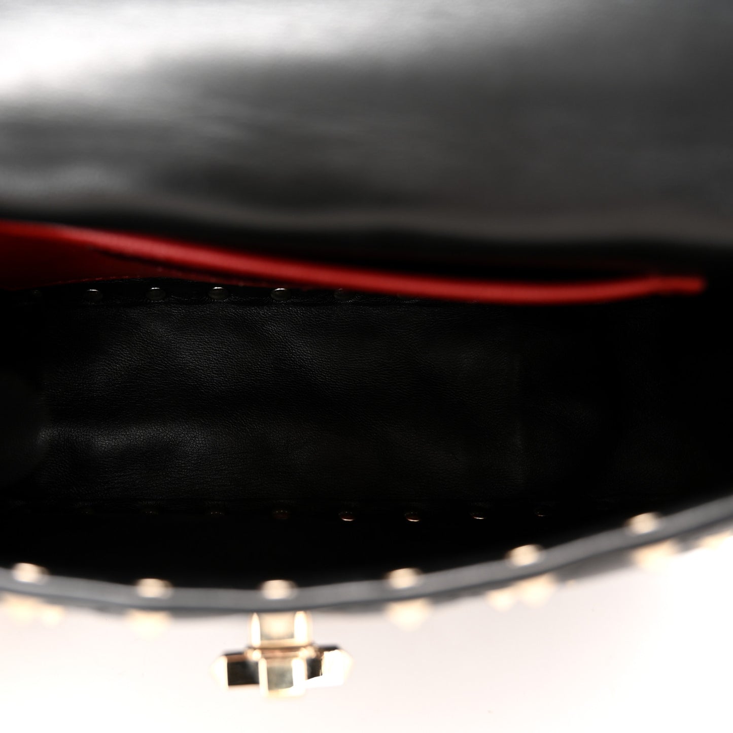 This is an authentic VALENTINO GARAVANI Lambskin Small Rockstud Spike Shoulder Bag in Black. This chic cross-body bag is beautifully crafted of black lambskin leather with light gold tone pyramid shape studs throughout. The bag features an optional light gold chain shoulder strap, a studded top handle, and a studded switch lock for the front flap. This opens to a matte black leather interior with a red leather patch pocket.Follow this item for alerts. Valentino Garavani is a registered trademark of Valentino Garavani. FASHIONPHILE is not affiliated with Valentino Garavani.
