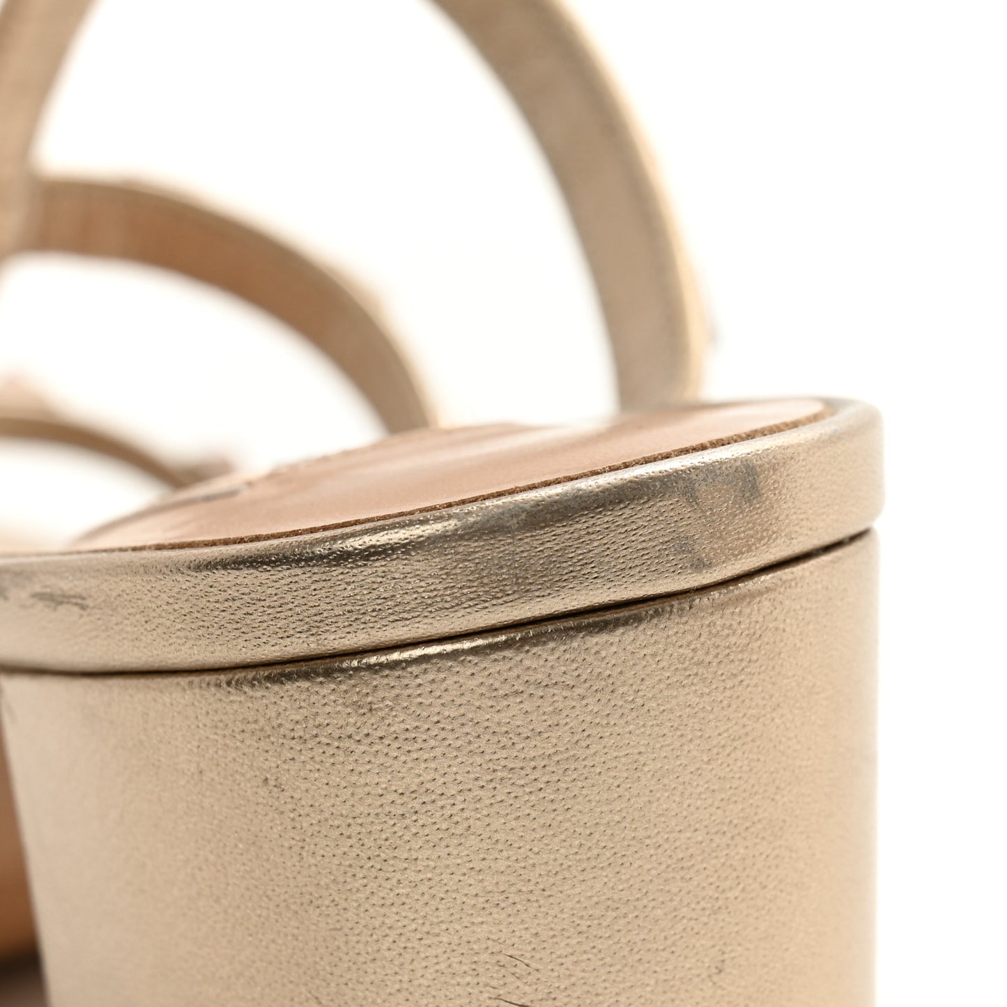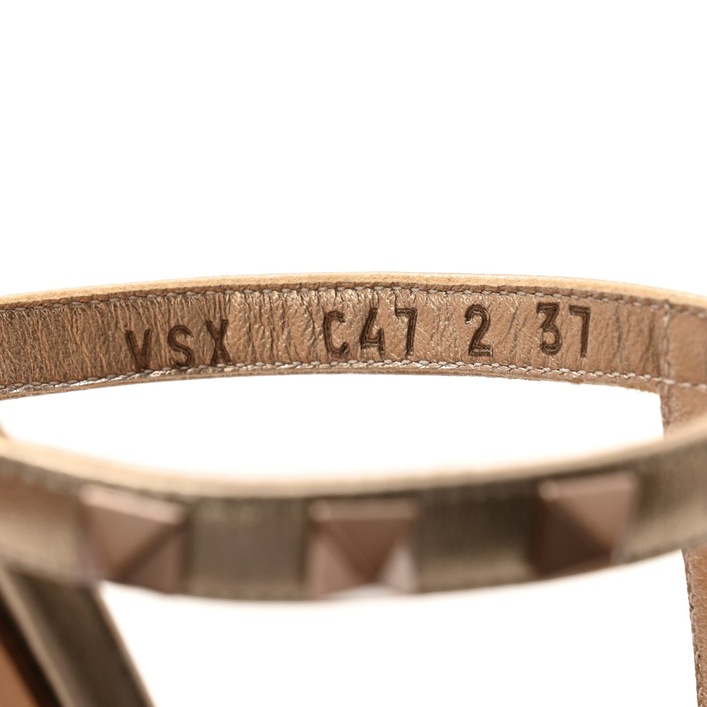 This is an authentic pair of VALENTINO GARAVANI Metallic Calfskin Rockstud Mule Sandals size 37 in Skin. These strappy sandals are crafted of calfskin leather in a soft metallic gold with gold hardware. They feature a 2.5 inch block heel and signature pyramid studs on the leather straps.Follow this item for alerts. Valentino Garavani is a registered trademark of Valentino Garavani. FASHIONPHILE is not affiliated with Valentino Garavani.