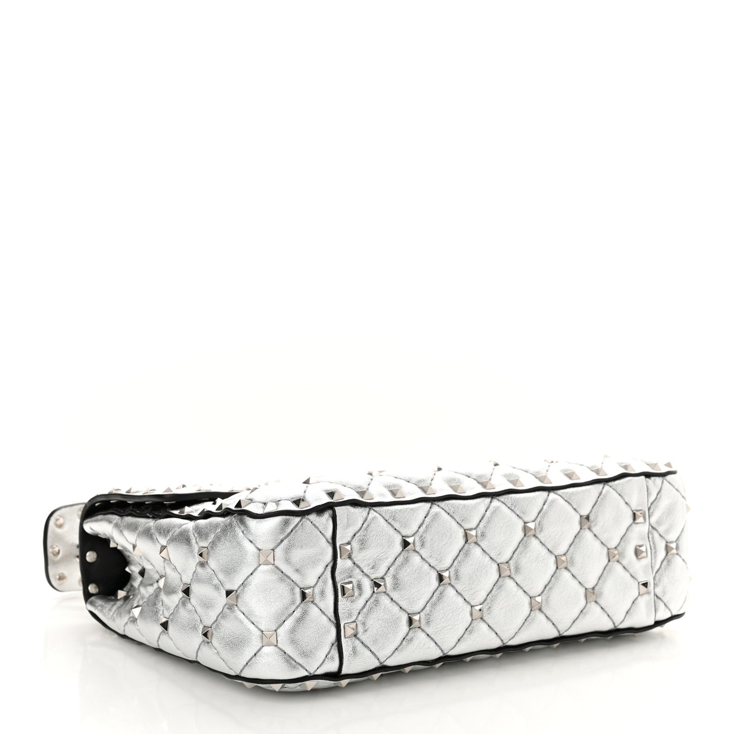 Metallic Nappa Medium Rockstud Spike Shoulder Bag Silver