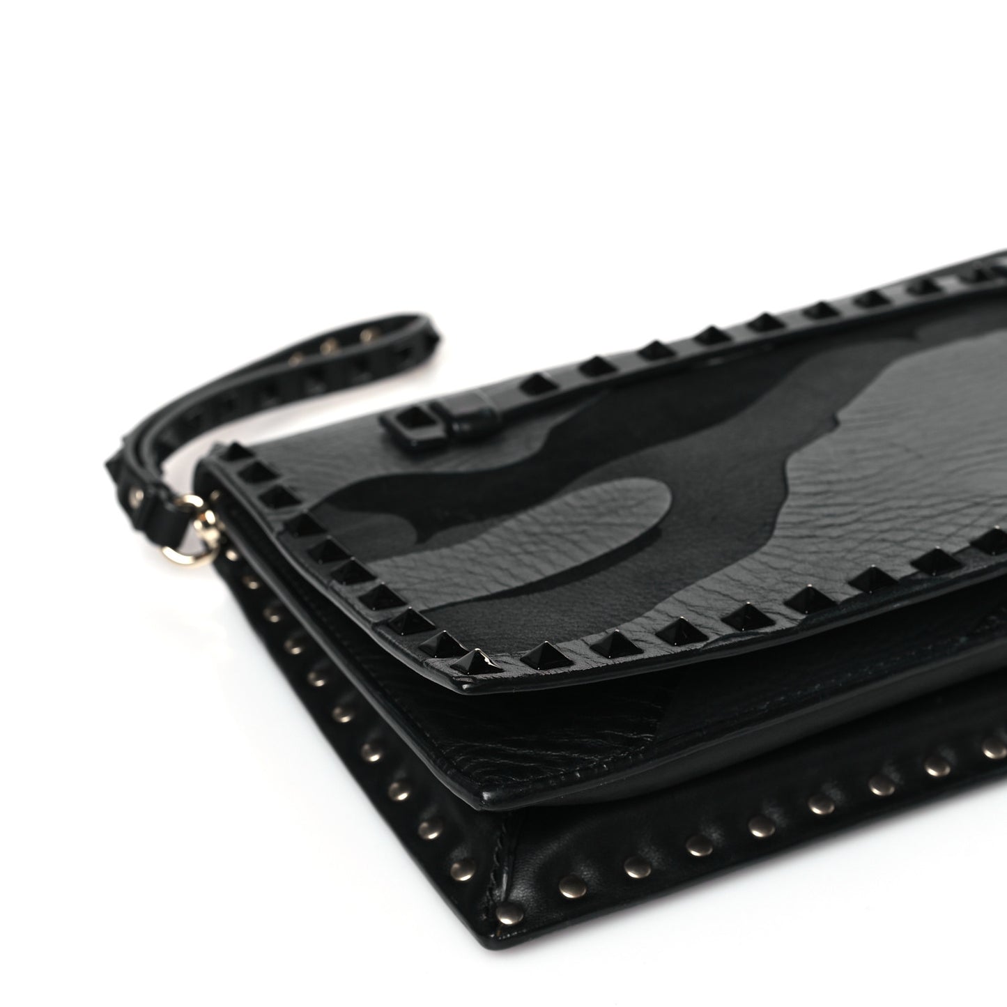 Valentino Garavani/ Bags/ Clutch & Evening /Valentino Garavani Nappa Canvas Camouflage Rockstud Wristlet Clutch Black
