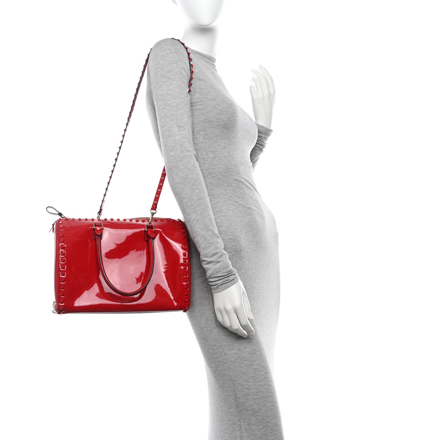 Valentino Garavani/ Bags/ Totes /Valentino Garavani Patent Rockstud Top Handle Satchel Red