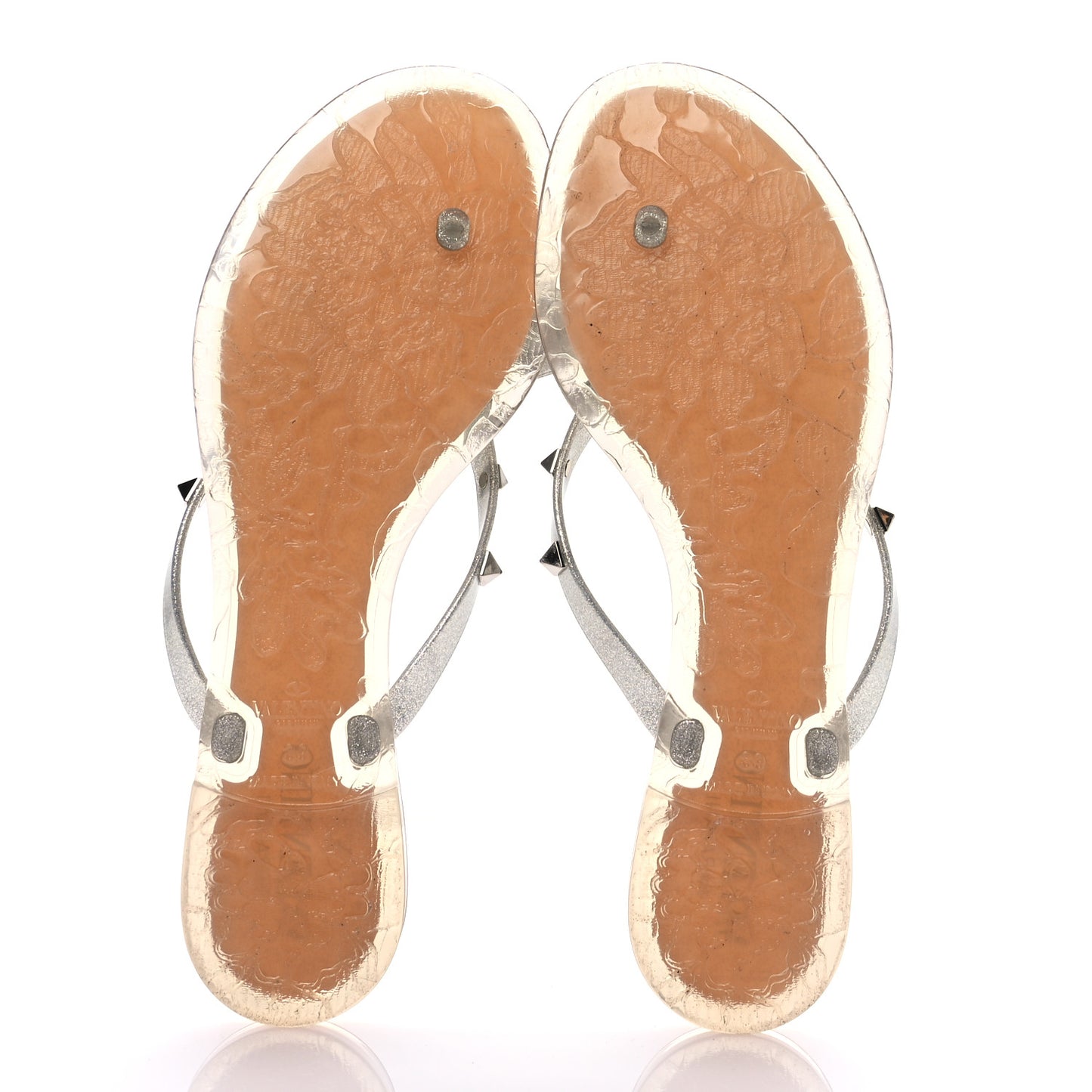 Valentino Garavani/ Accessories/ Shoes /Valentino Garavani PVC Jelly Glitter Rockstud Bow Thong Sandals 38 Silver