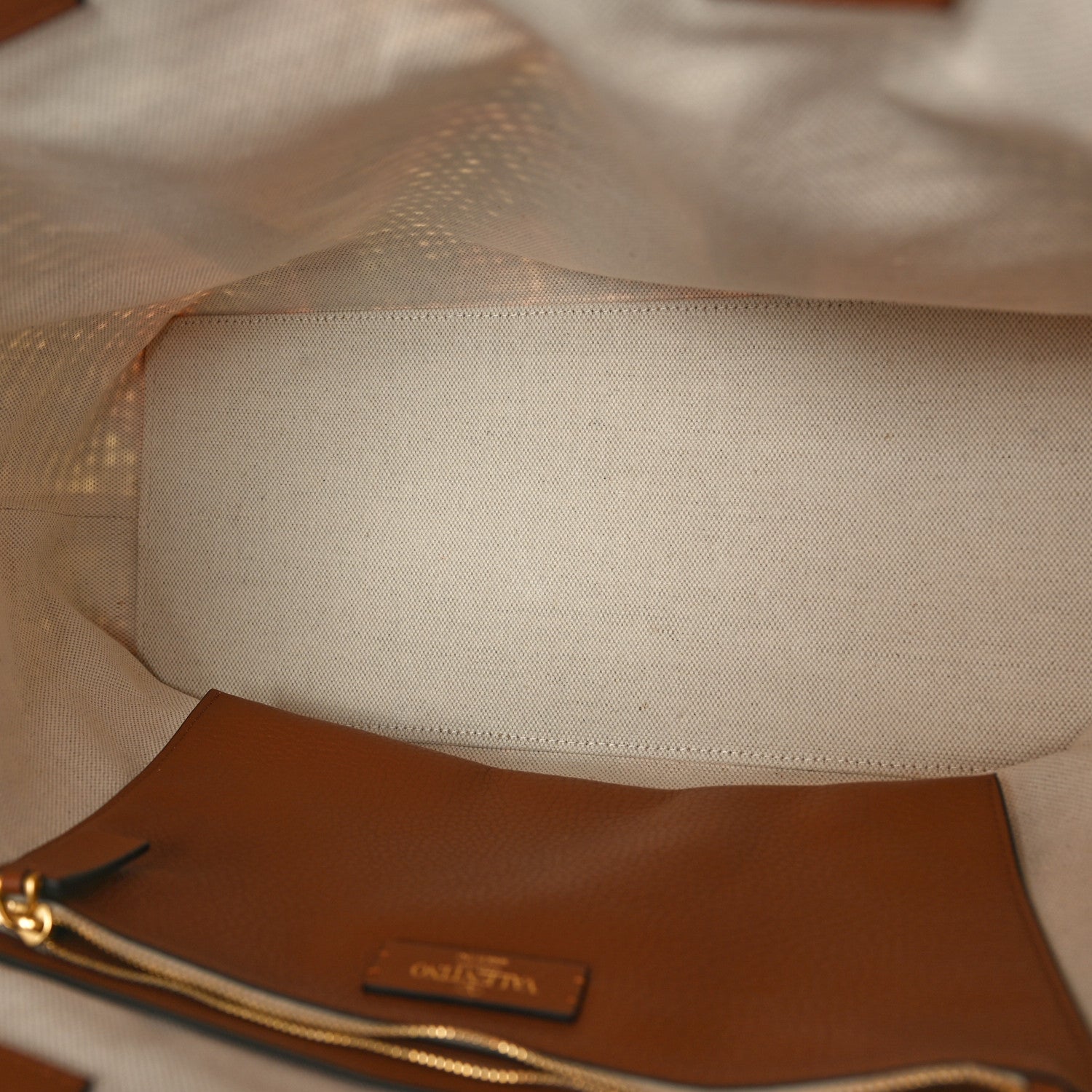 This is an authentic VALENTINO GARAVANI Raffia Calfskin Rockstud Summer Tote in Multicolor. This versatile tote is crafted of multicolor woven raffia with brown leather trim. This tote features a brown leather top handle. The top opens to a beige fabric interior with a brown leather zipper pocket.Follow this item for alerts. Valentino Garavani is a registered trademark of Valentino Garavani. FASHIONPHILE is not affiliated with Valentino Garavani.