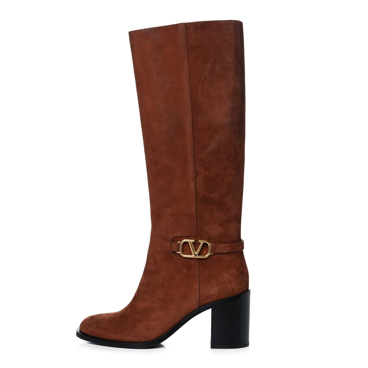 Valentino Garavani/ Accessories/ Shoes /Valentino Garavani Suede Vlogo Knee High Boots 39 Brown