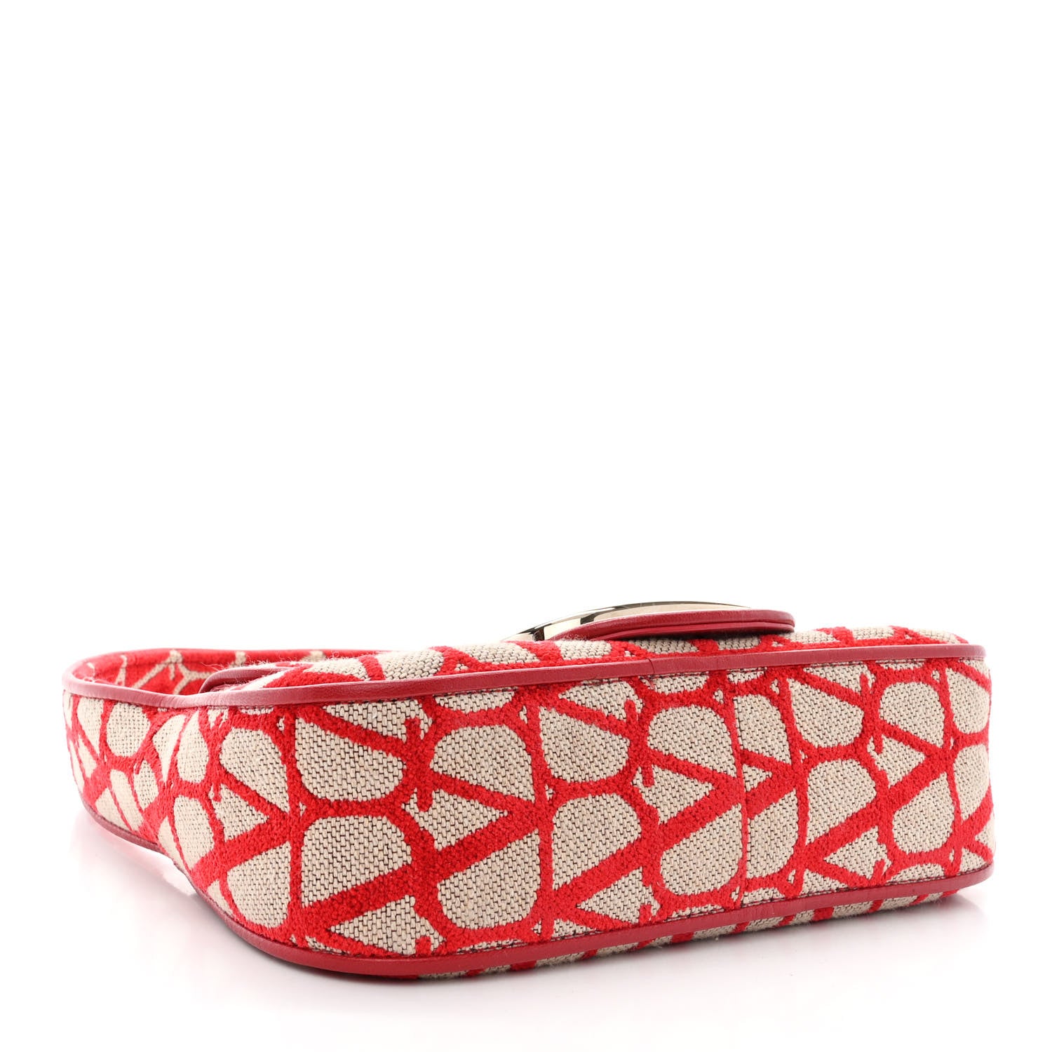 Valentino Garavani/ Bags/ Shoulder Bags /Valentino Garavani Toile Iconographe Goatskin Vlogo Small Loco Hobo Bag Natural Rosso Valentino
