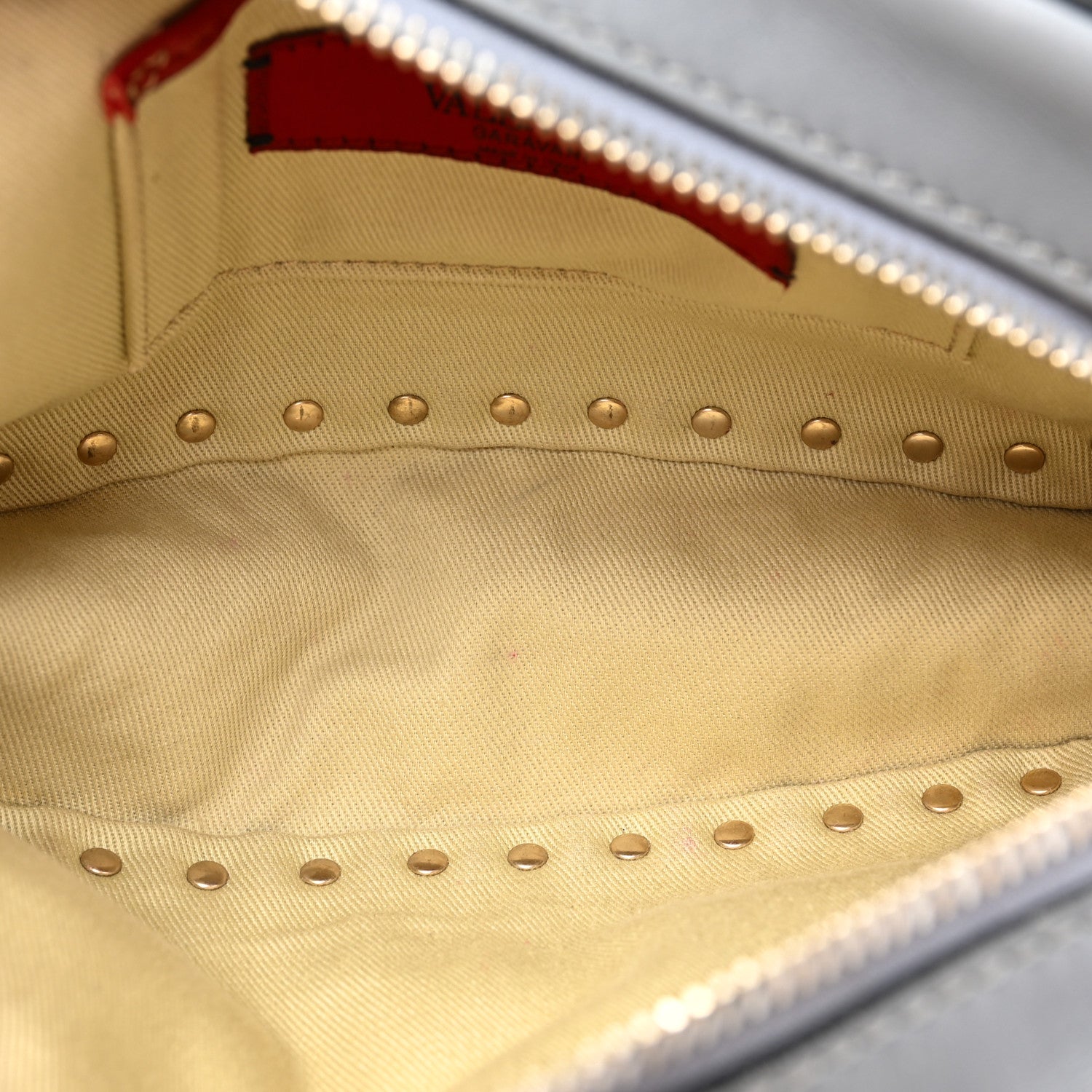 This is an authentic VALENTINO GARAVANI Calfskin Colorblock Rockstud Camera Crossbody Bag in Multicolor. This ultra-chic cross-body shoulder bag is crafted of luxurious calfskin leather in a color-block style of several shades. This statement cross-body bag is bordered with signature gold pyramid studs along the borders of the bag including the shoulder strap. The top zipper opens to a beige fabric interior with a patch pocket.Follow this item for alerts. Valentino Garavani is a registered trademark of Valentino Garavani. FASHIONPHILE is not affiliated with Valentino Garavani.