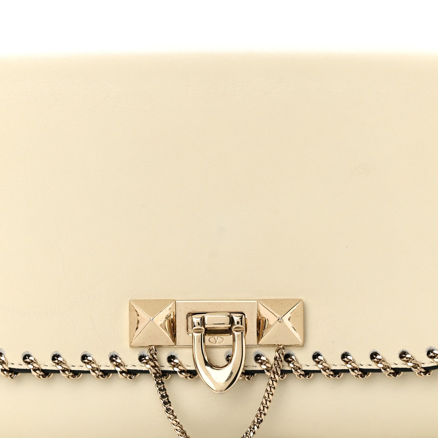 Valentino Garavani/ Bags/ Crossbody /Valentino Garavani Vitello Groumette Demilune Chain Clutch Ivory