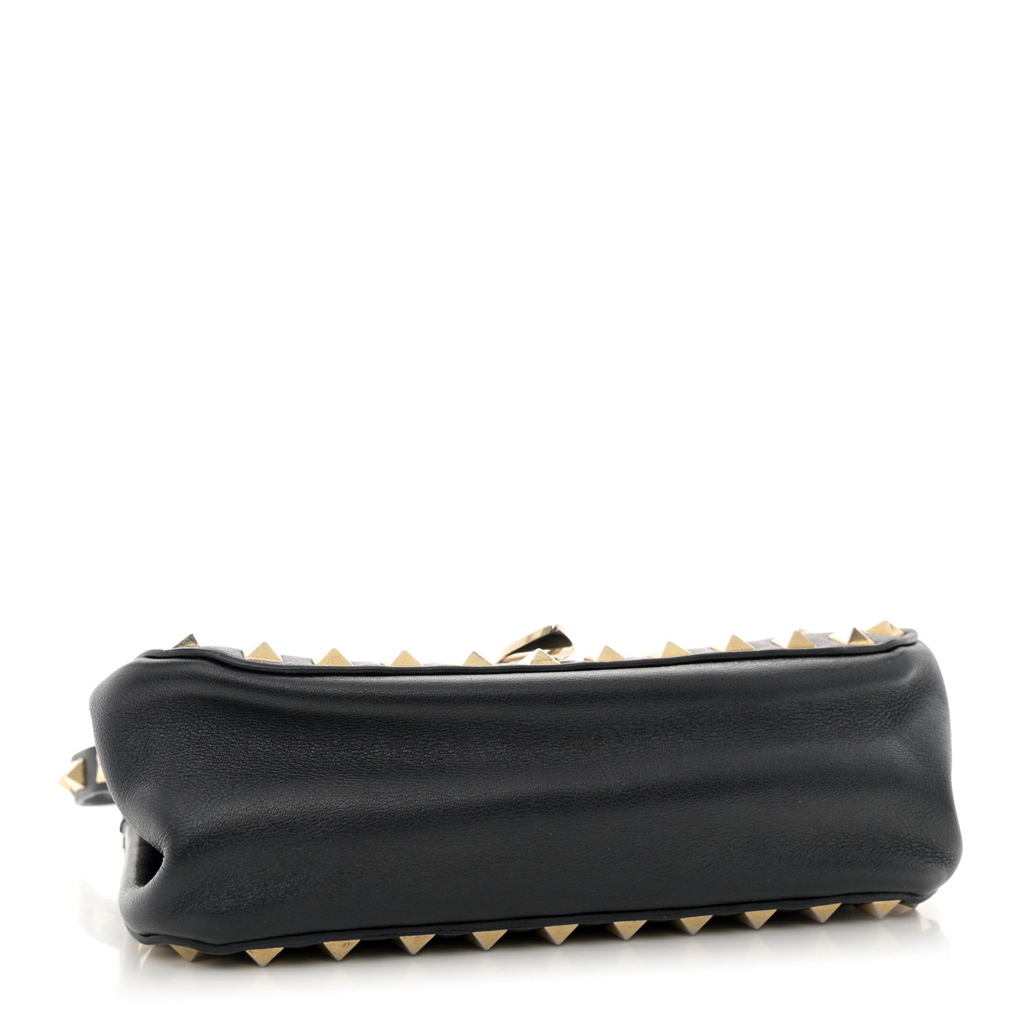 This is an authentic VALENTINO GARAVANI Vitello Mini Rockstud Flap Saddle Crossbody Bag Black. This chic crossbody bag is beautifully crafted of fine leather in black. The bag features a brass-studded leather shoulder strap, studded borders, and a studded brass switch lock for the frontal flap. This opens to a black fabric interior.Follow this item for alerts. Valentino Garavani is a registered trademark of Valentino Garavani. FASHIONPHILE is not affiliated with Valentino Garavani.