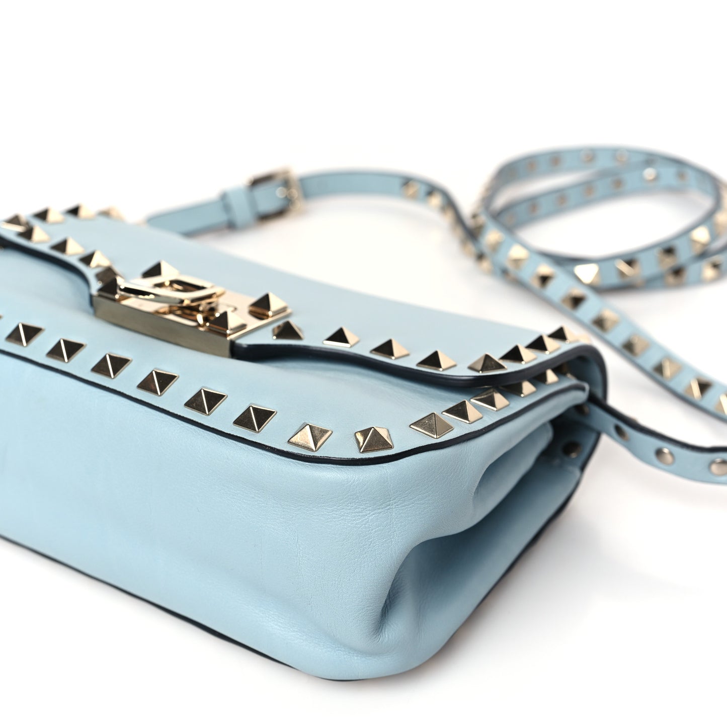 Valentino Garavani/ Bags/ Handbags /Valentino Garavani Vitello Mini Rockstud Flap Saddle Crossbody Bag Sky Sorbet