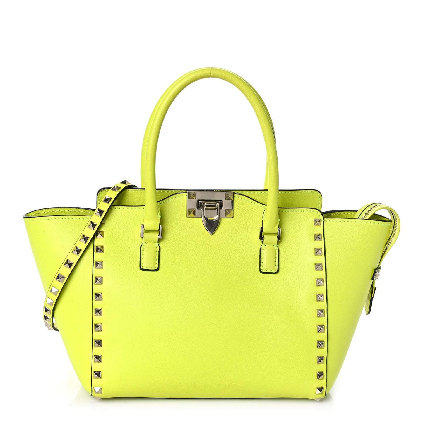 Valentino Garavani/ Bags/ Shoulder Bags /Valentino Garavani Vitello Small Rockstud Double Handle Tote Yellow Fluo