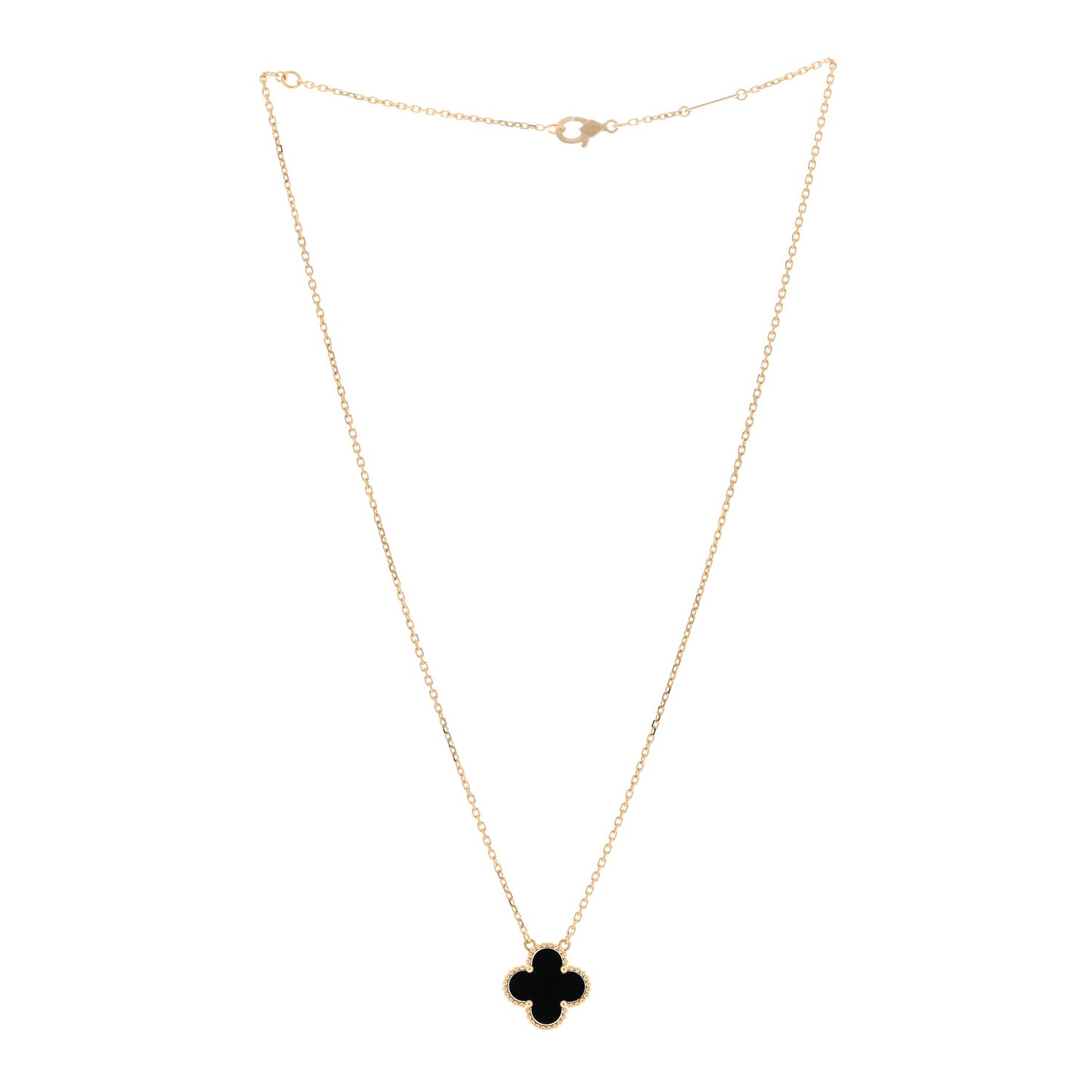 18K Yellow Gold Black Onyx Vintage Alhambra Pendant Necklace