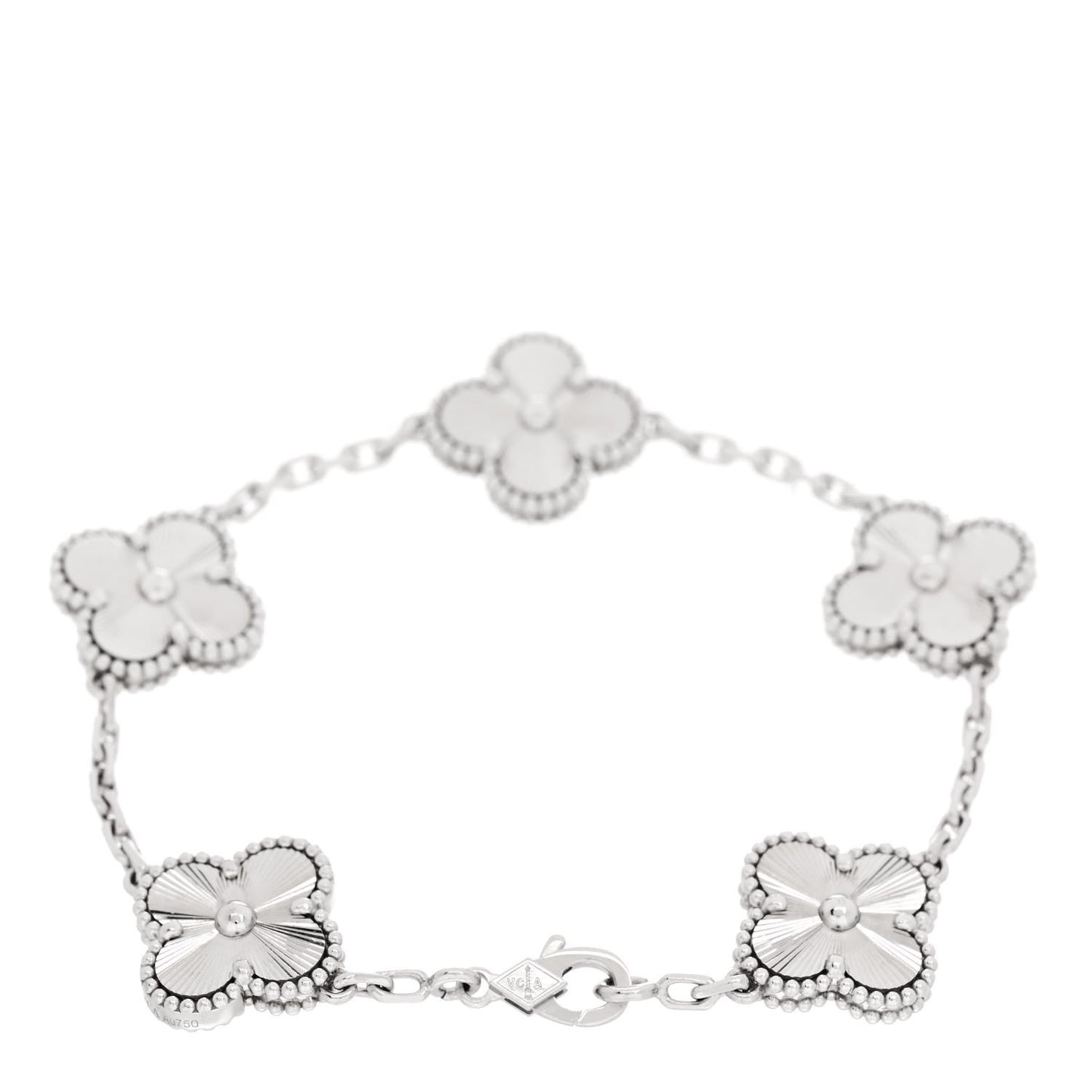 18K White Gold 5 Motifs Guilloche Vintage Alhambra Bracelet