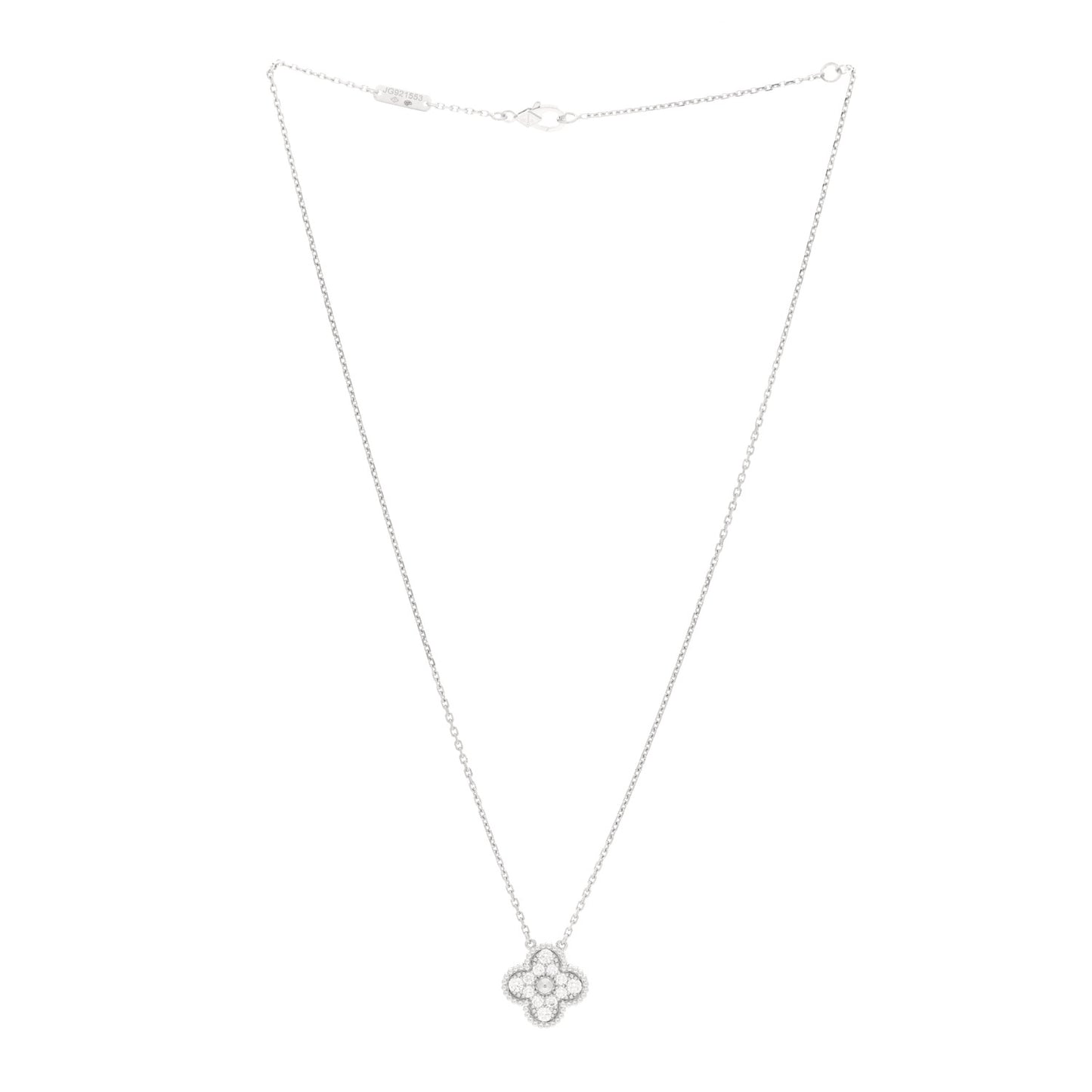 18K White Gold Diamond Vintage Alhambra Pendant Necklace