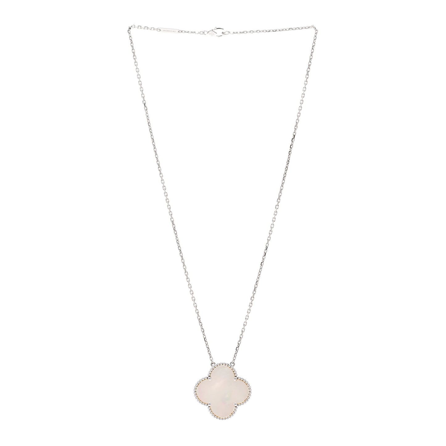 18K White Gold Mother of Pearl Magic Alhambra Pendant Necklace