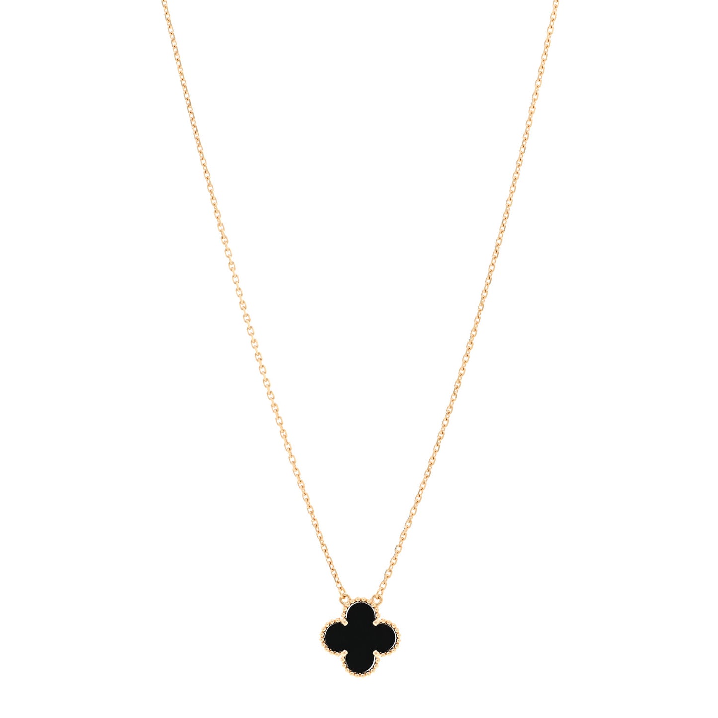 This is an authentic VAN CLEEF & ARPELS 18K Yellow Gold Black Onyx Vintage Alhambra Pendant Necklace. The necklace is crafted of 18 karat yellow gold and features an Alhambra clover motif pendant set with black onyx.Follow this item for alerts. Van Cleef & Arpels is a registered trademark of Van Cleef & Arpels. FASHIONPHILE is not affiliated with Van Cleef & Arpels.