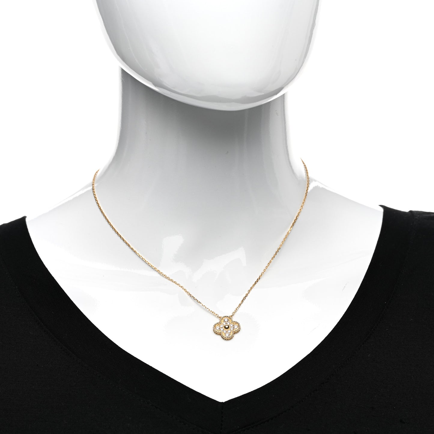 18K Yellow Gold Diamond Vintage Alhambra Pendant Necklace