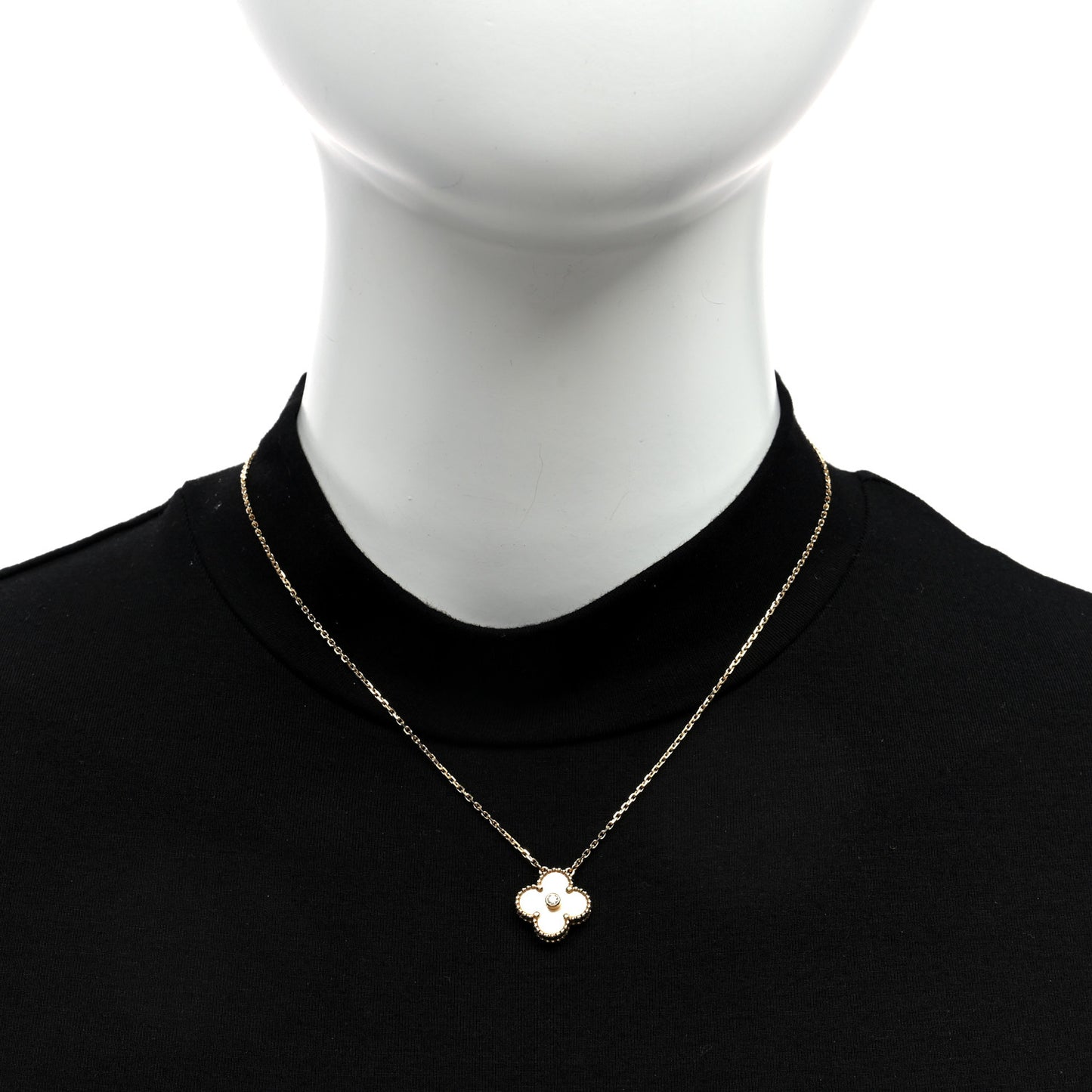This is an authentic VAN CLEEF & ARPELS 18K Yellow Gold Diamond Yellow Mother of Pearl Vintage Alhambra Pendant Necklace. The necklace is crafted of 18 karat yellow gold and features a yellow mother-of-pearl clover motif set with a round brilliant cut diamond, approximately .05 carat.Follow this item for alerts. Van Cleef & Arpels is a registered trademark of Van Cleef & Arpels. FASHIONPHILE is not affiliated with Van Cleef & Arpels.