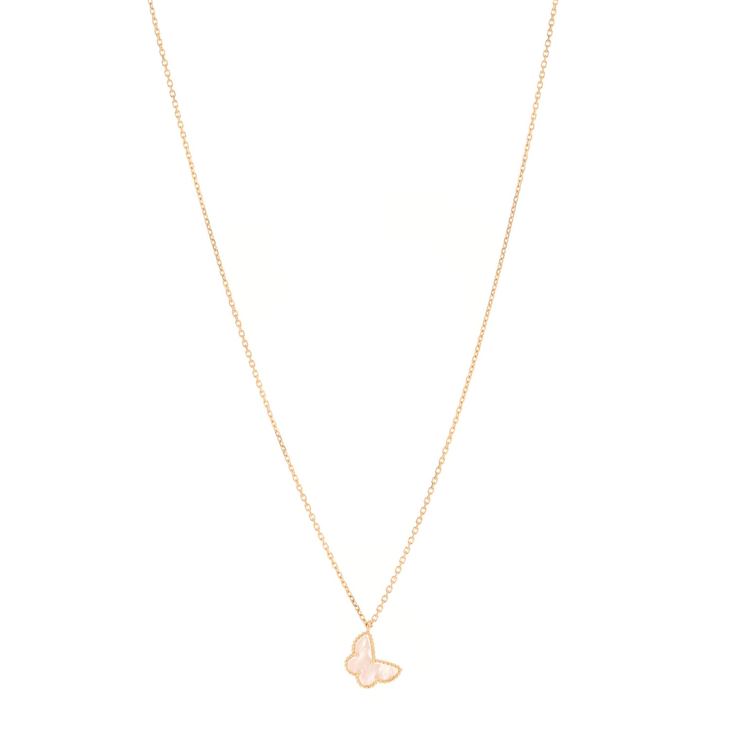 18K Yellow Gold Mother of Pearl Sweet Alhambra Butterfly Pendant Necklace