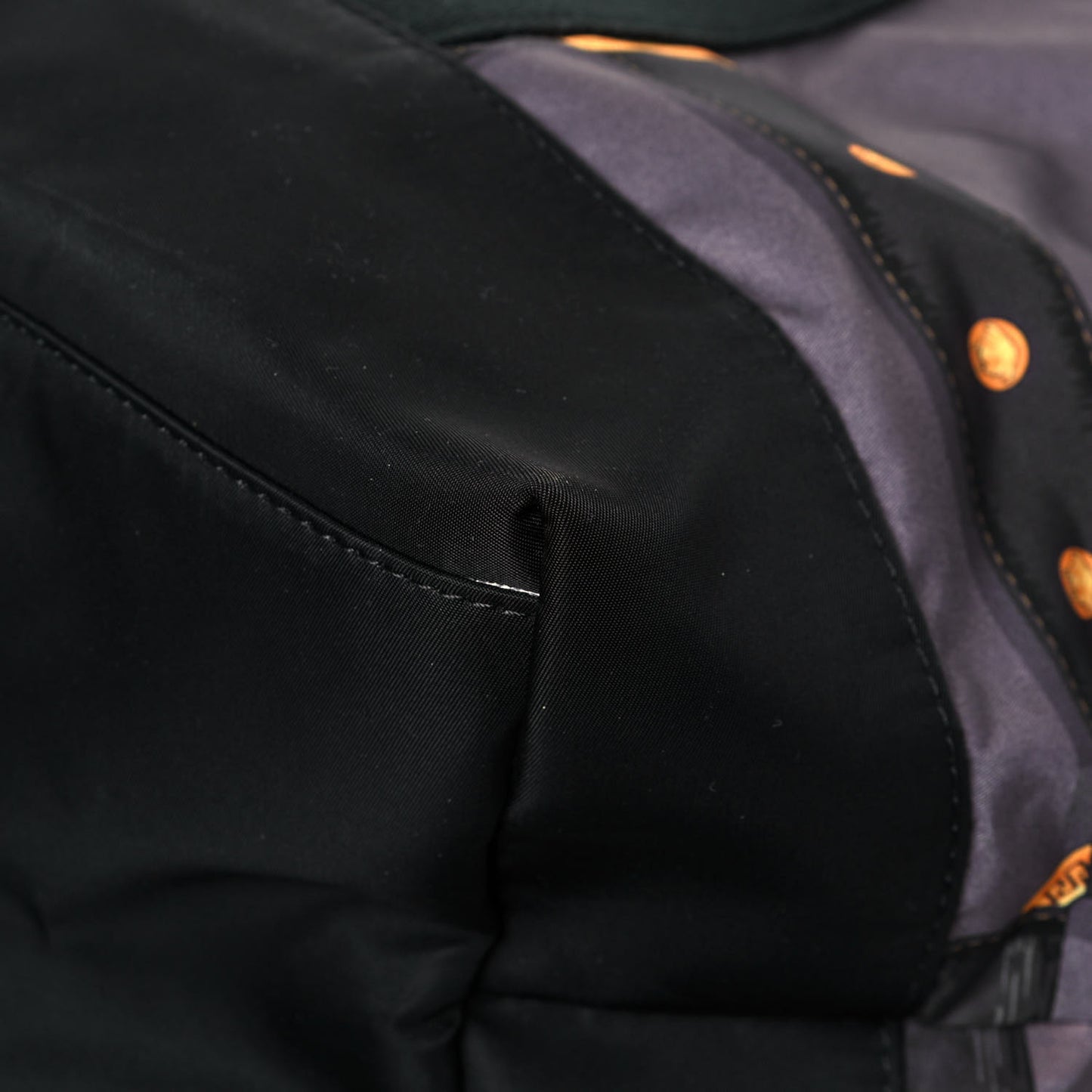 This is an authentic VERSACE Nylon Tribute Print Convertible Tote in Grey. This lovely shoulder bag is crafted of print nylon in grey and black. The bag features black leather handles. The top opens to a black fabric interior.Follow this item for alerts. Versace is a registered trademark of Versace. FASHIONPHILE is not affiliated with Versace.