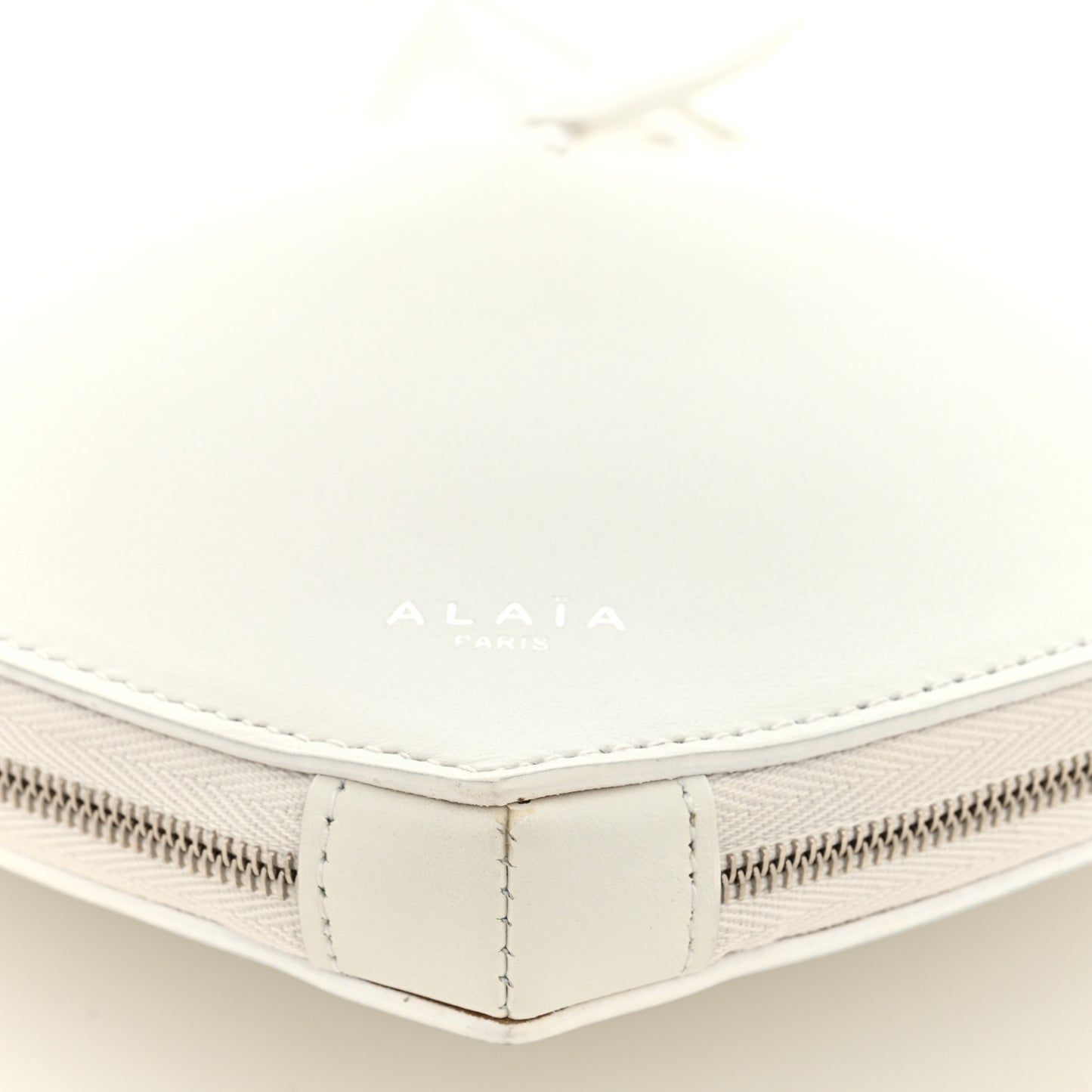This is an authentic ALAIA Calfskin Le Coeur Bag in Optic White. This stylish tote is made of smooth white leather in shape of a heart and features a leather strap. The handbag opens to a matching leather interior.Follow this item for alerts. Alaia is a registered trademark of Alaia. FASHIONPHILE is not affiliated with Alaia.
