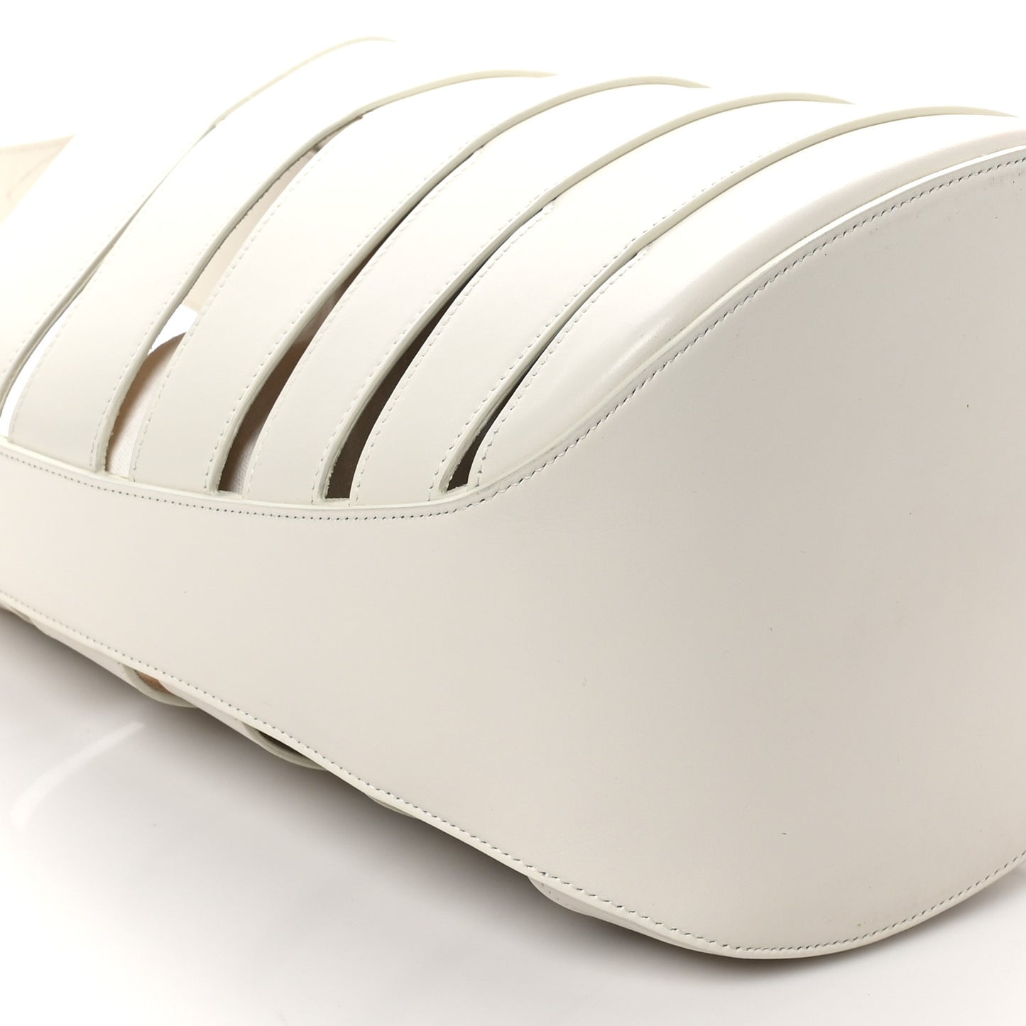This is an authentic ALAIA Lux Calfskin Medium Babel Bag in White. This bag is crafted of white calfskin leather with a laser cut design. It features an adjustable shoulder strap, an open top, and a beige suede interior with a removable zipper pouch.Follow this item for alerts. Alaia is a registered trademark of Alaia. FASHIONPHILE is not affiliated with Alaia.