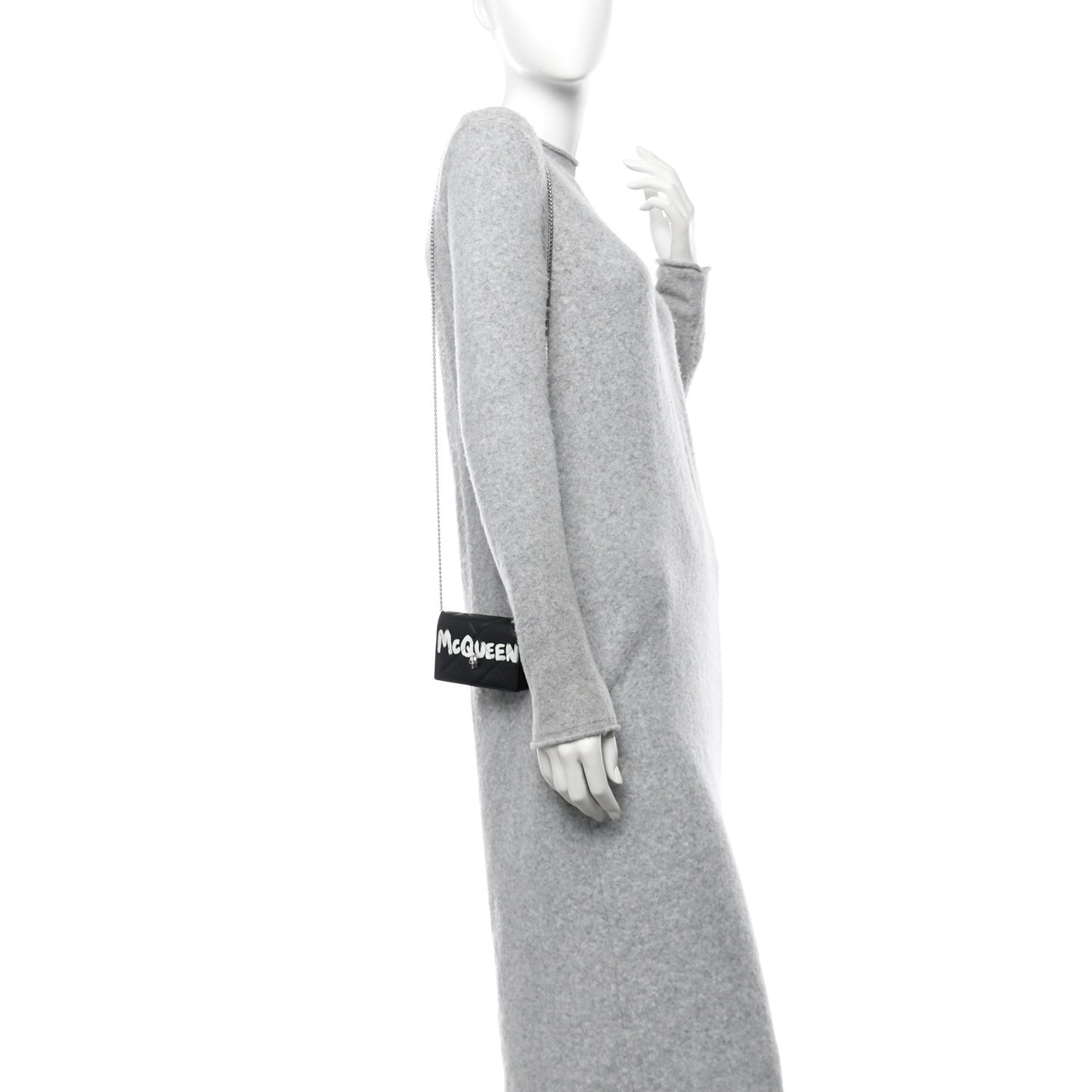 Alexander McQueen/ Bags/ Wallet Style /Alexander McQueen Nappa Graffiti Quilted Graffiti Skull Card Holder on Chain Black White