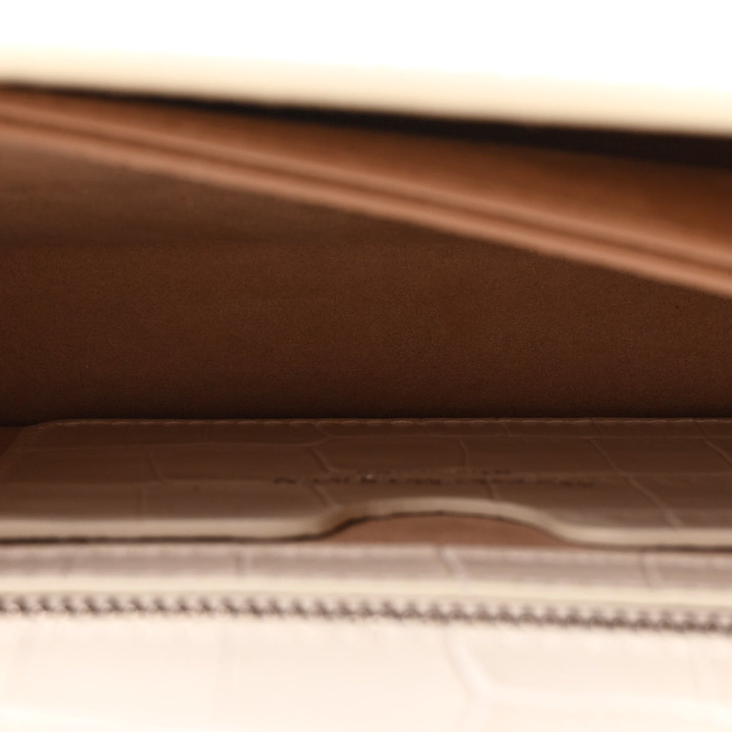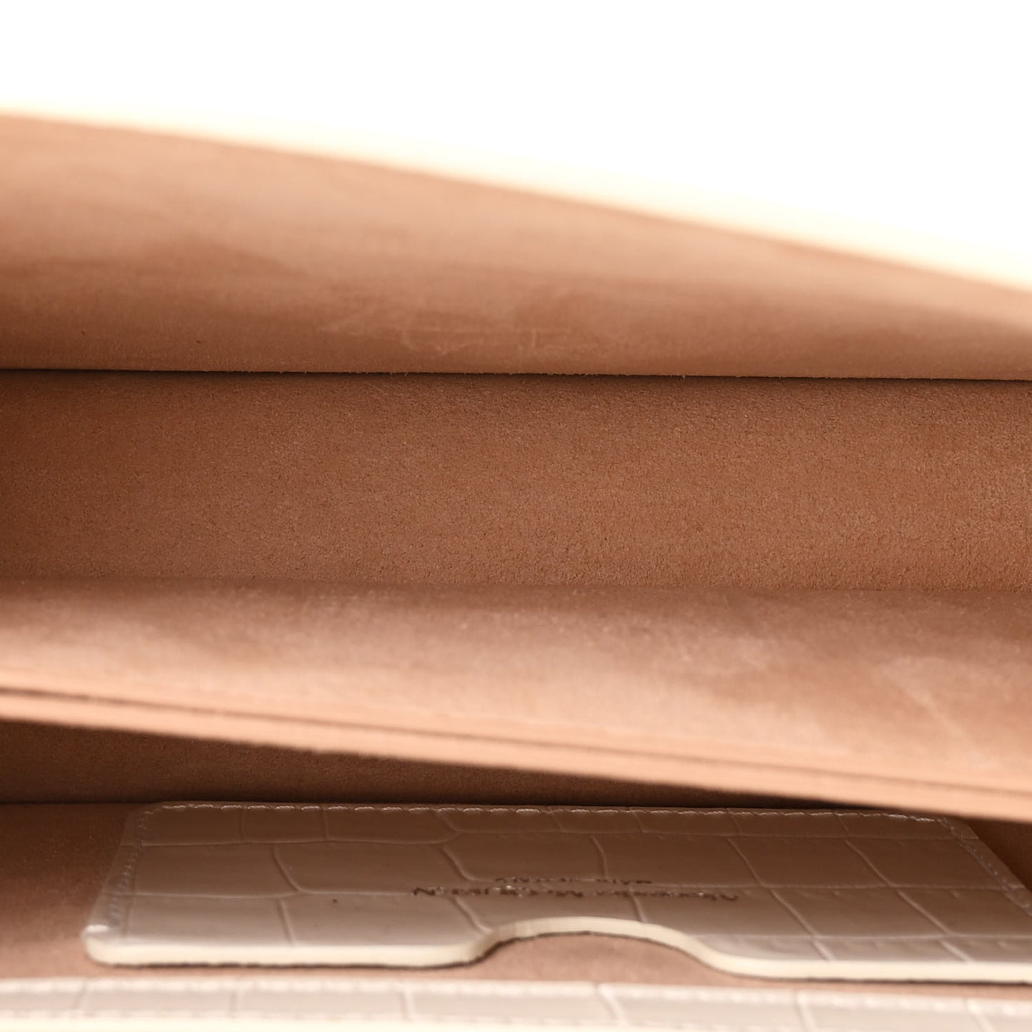 Shiny Calfskin Crocodile Embossed Knuckle Jeweled Crossbody White