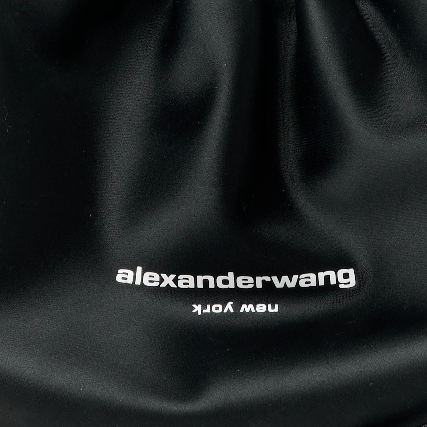 This is an authentic ALEXANDER WANG Lambskin Nylon Small Ryan Bag in Black. This bag is crafted of lambskin in black with leather detailing. The bag features a drawstring style closure with an Alexander Wang printed logo on the front. The drawstring opens to a black fabric interior with a pocket.Follow this item for alerts. Alexander Wang is a registered trademark of Alexander Wang. FASHIONPHILE is not affiliated with Alexander Wang.