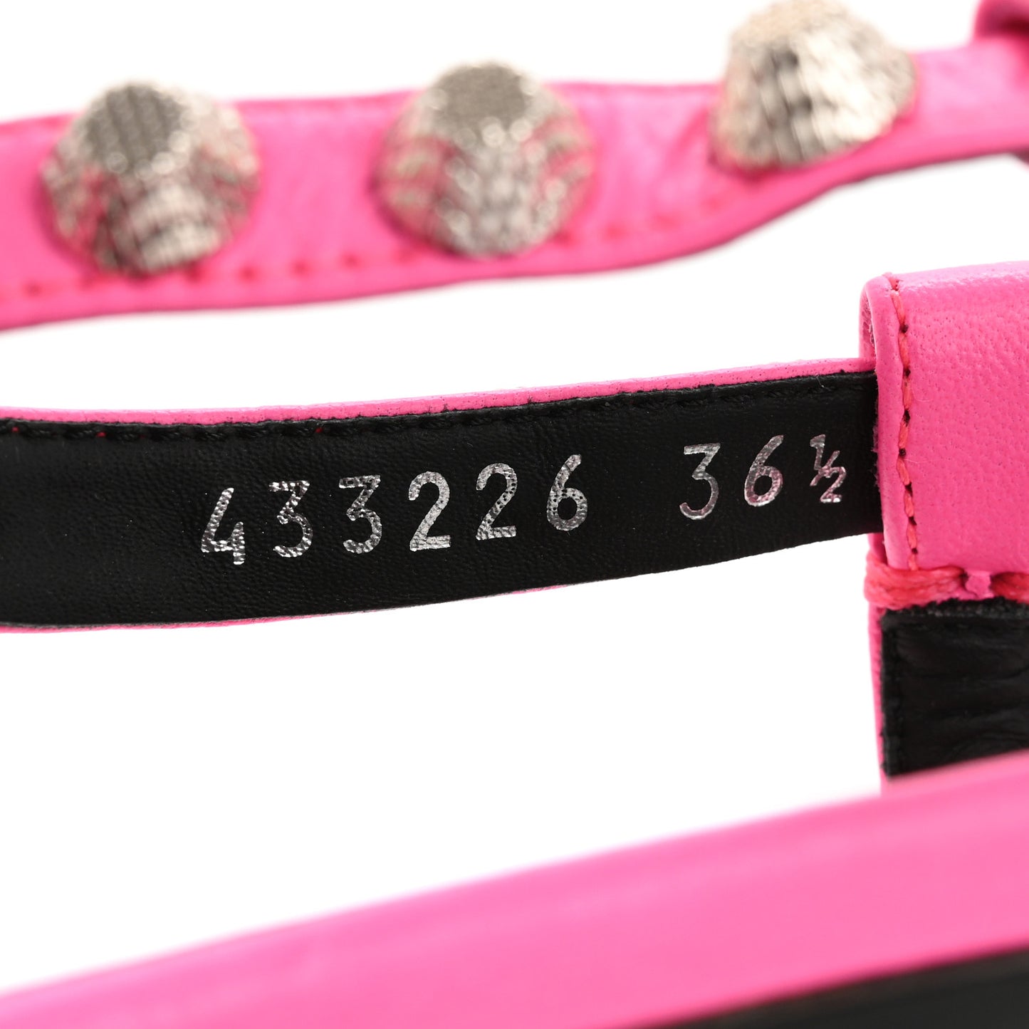 This is an authentic pair of BALENCIAGA Agneau Arena Giant 12 Silver Hardware Flat Thong Sandals size 36.5 in Rose Fluo. These stylish thong sandal are crafted of pink leather and feature giant silver style studs along the top.Follow this item for alerts. Balenciaga is a registered trademark of Balenciaga. FASHIONPHILE is not affiliated with Balenciaga.
